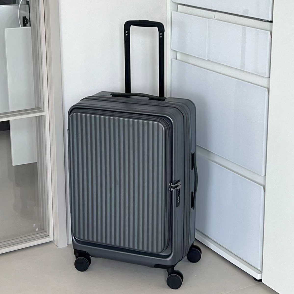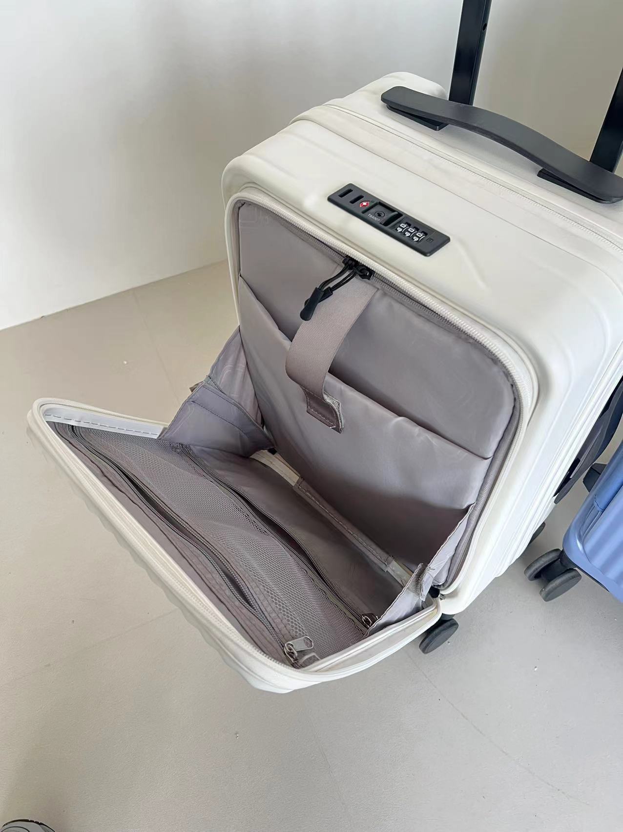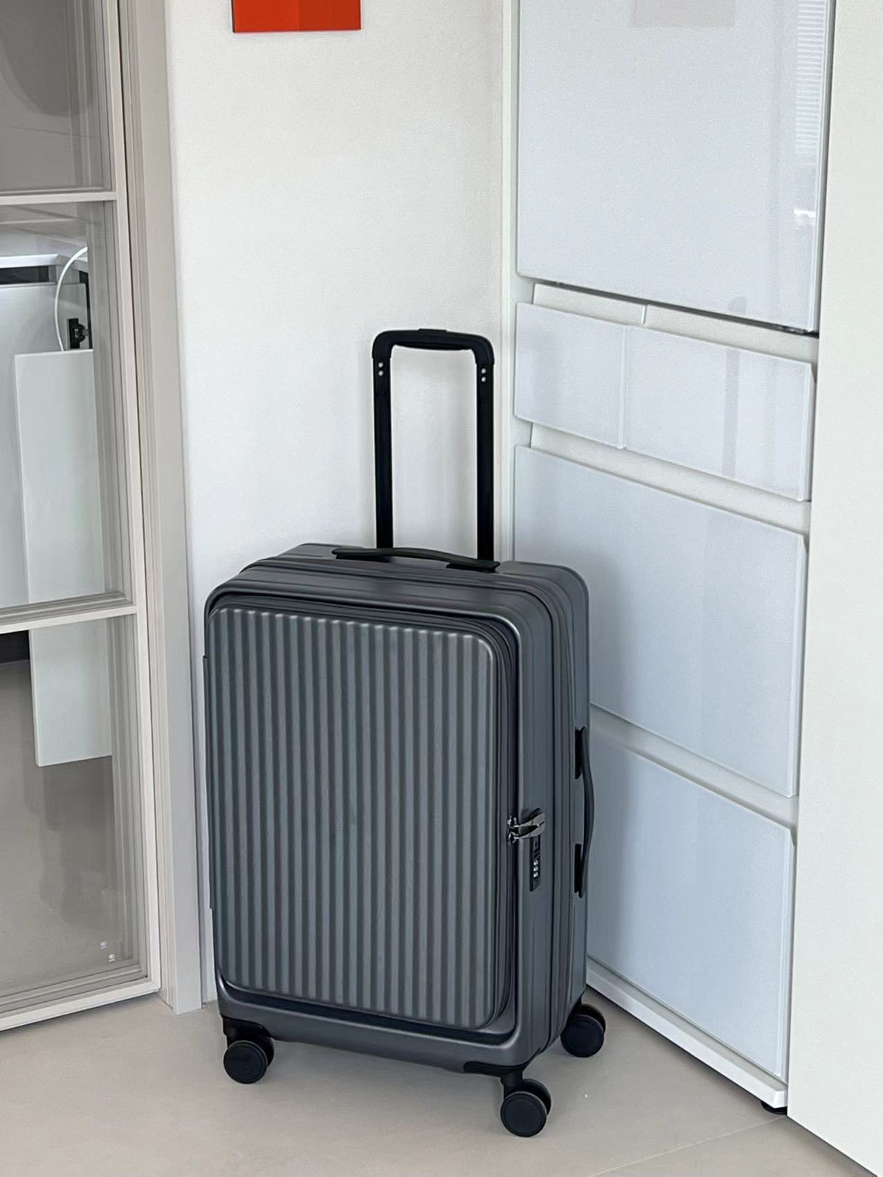 여성을위한 전면 개방형 가방 2024 새로운 확장 가능한 다기능 트롤리 케이스 20inch 가방 탑승 가방