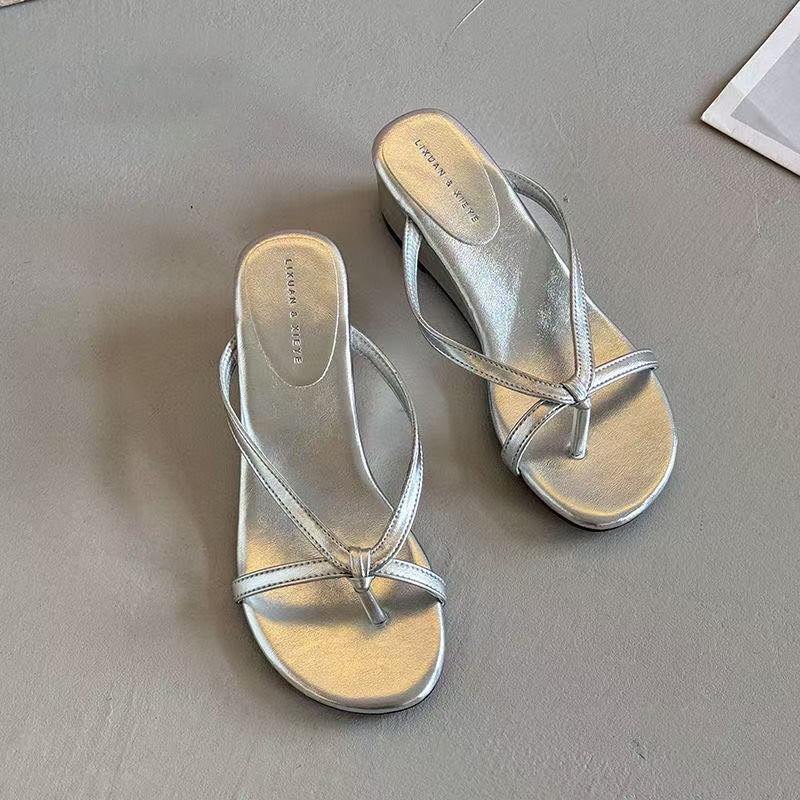 요정 스타일 스커트 웨지 샌들 2025 여성 여름 패션 휴가 슬리퍼 두꺼운 밑창 슬리퍼스토어 가기