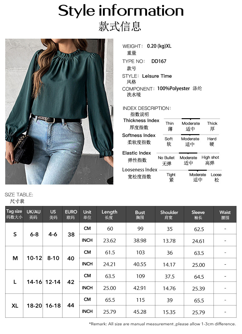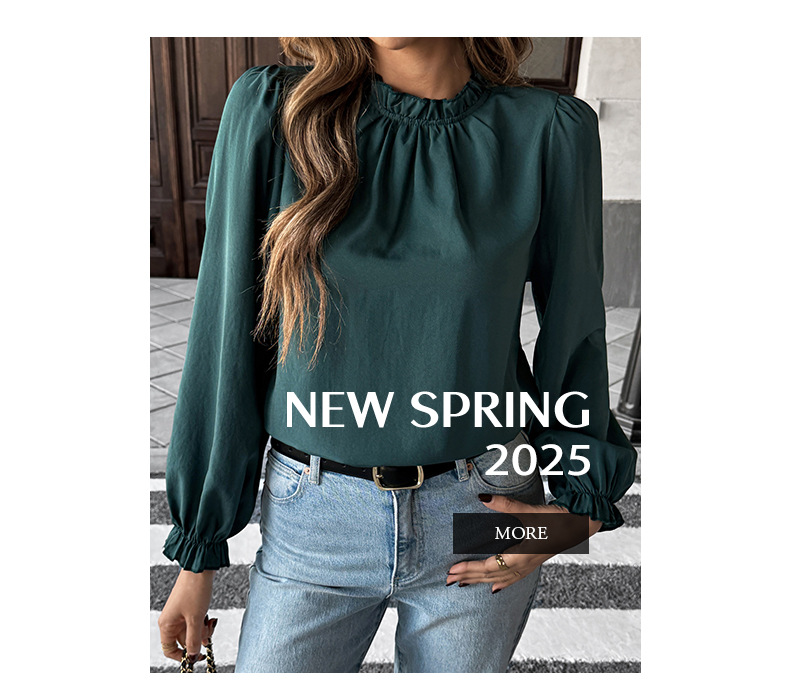 크로스보더 유럽 및 미국 캐주얼 심플 스타일 긴팔 단색 러플 셔츠 여성복 2025 봄 여름 독립 사이트 일본 및 한국 스타일스토어 가기