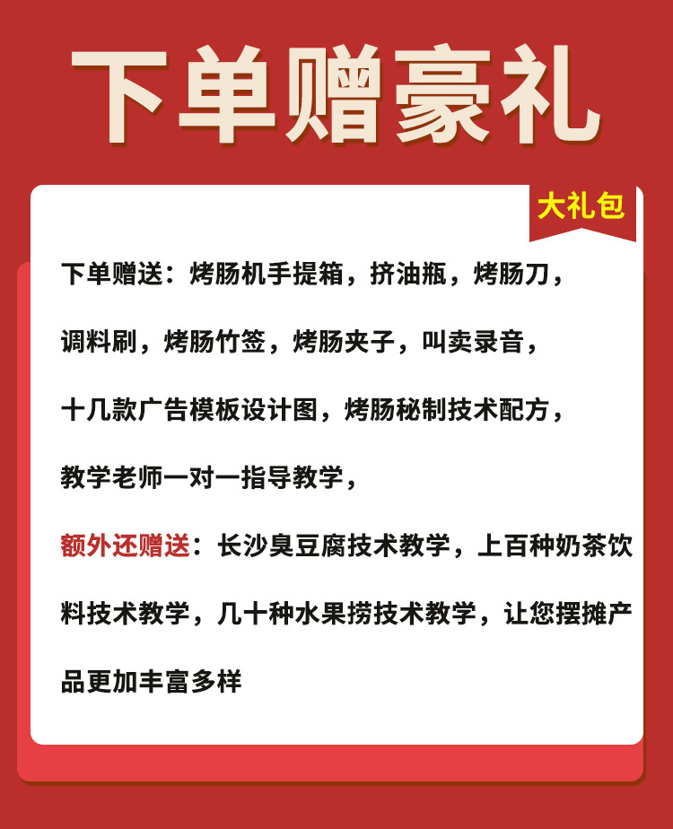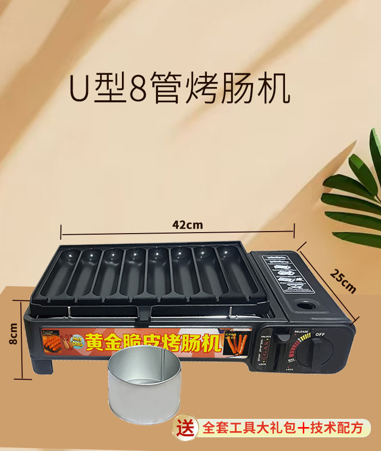 • U자형 8튜브 소시지 그릴 + 두꺼운 오일 노즐 소시지 팬 + 여행 가방 + 도구 및 기술 풀 세트