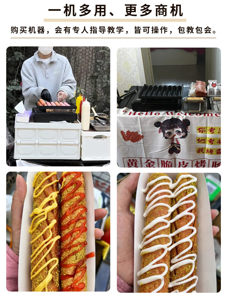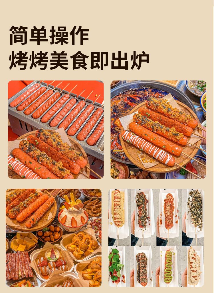 소시지 구이 기계, 바삭한 전분 소시지, 길가 노점, 상업용 야시장 노점, 카세트 스토브, 소시지 구이 트레이, 새알 문어 볼 기계