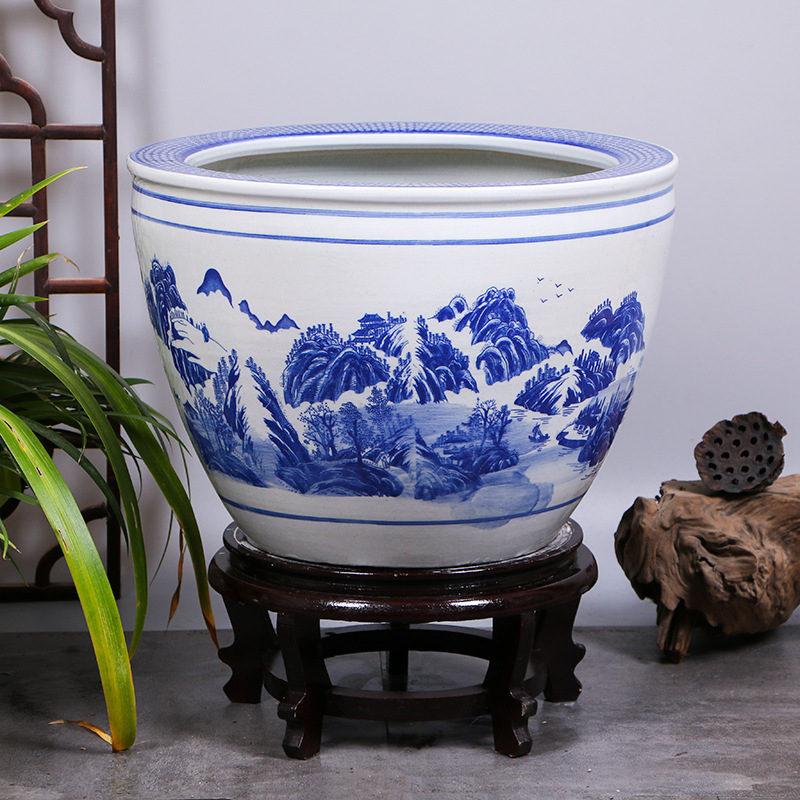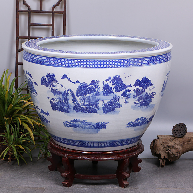 정원 대형 탱크 경덕진 청백자 물탱크 금붕어 탱크 연꽃 그릇 연꽃 수련 냄비 거북이 탱크 호텔 거북이 탱크스토어 가기