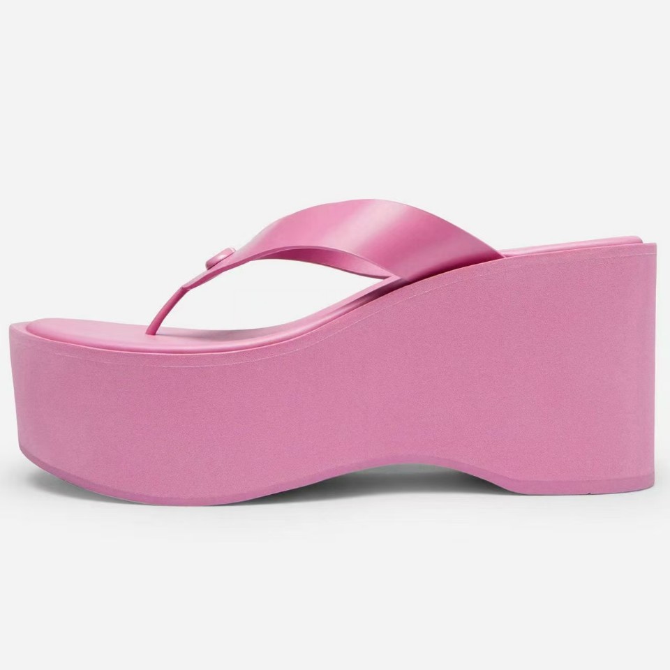 2025 봄과 가을 새로운 스타일 작은 사람들을 위한 슈퍼 하이힐 플립플롭 여성용 웨지 힐 패션 샌들 두꺼운 샌들스토어 가기