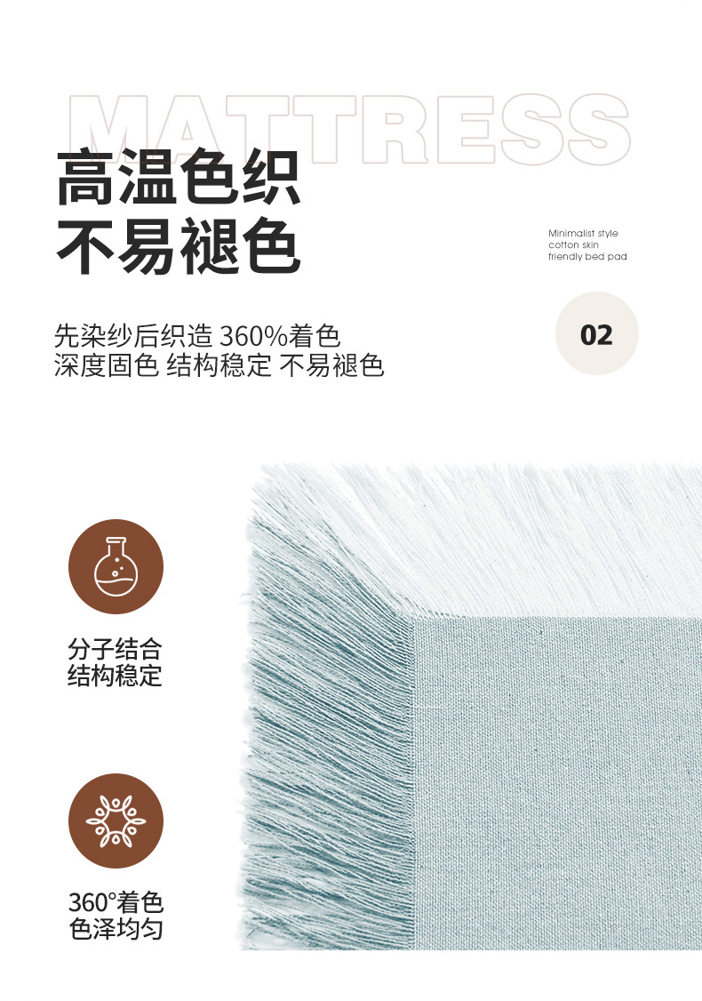6、产品的维护洗涤:初次洗涤会有浮色,属于正常现象。第一次洗涤请不要放任何洗涤剂,清水洗即可。洗涤时间不宜太久,平铺凉干之后就可以正常使用了。