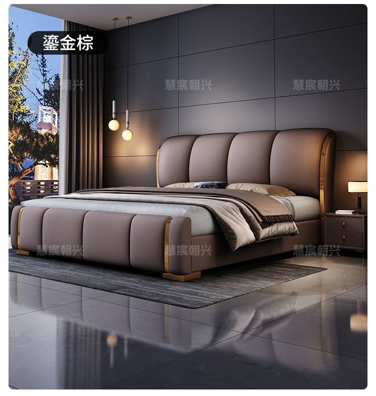 2025 새로운 가죽 침대 더블 마스터 침실 대형 침대 1.8 현대적인 간단한 이탈리아 스타일 라이트 럭셔리 1.5 홈 소프트 팩 웨딩 침대스토어 가기