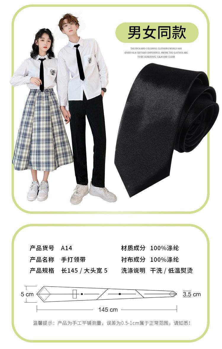 Zhao Liying의 같은 스타일 검은 넥타이 5CM 좁은 남성과 여성 학생 대학 스타일 일본식 jk 게으른 지퍼 넥타이 손으로 묶음