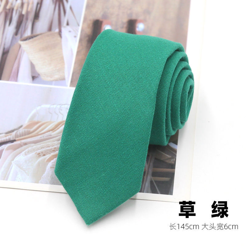 넥타이 남성 한국 스타일 캐주얼 다재다능한 여성 대학 스타일 문학 6CM 손 묶음 단색 학생 사과 녹색 짙은 녹색 면 및 린넨