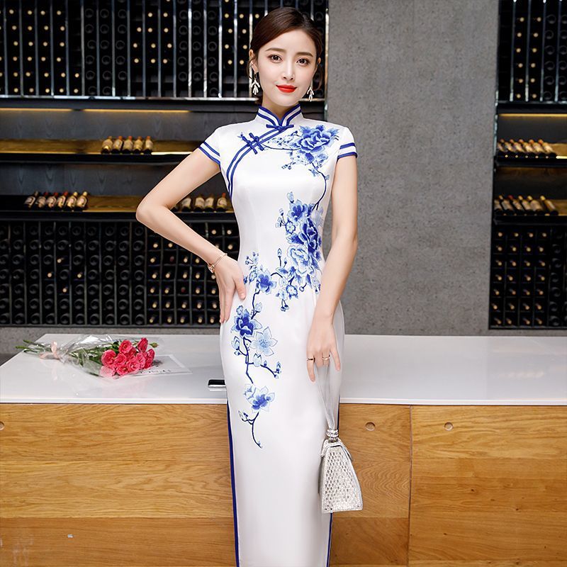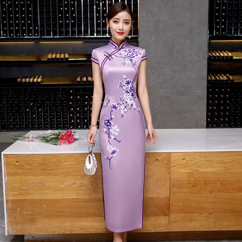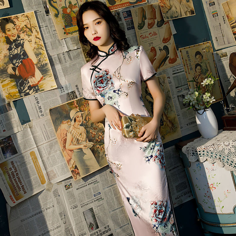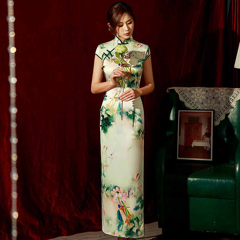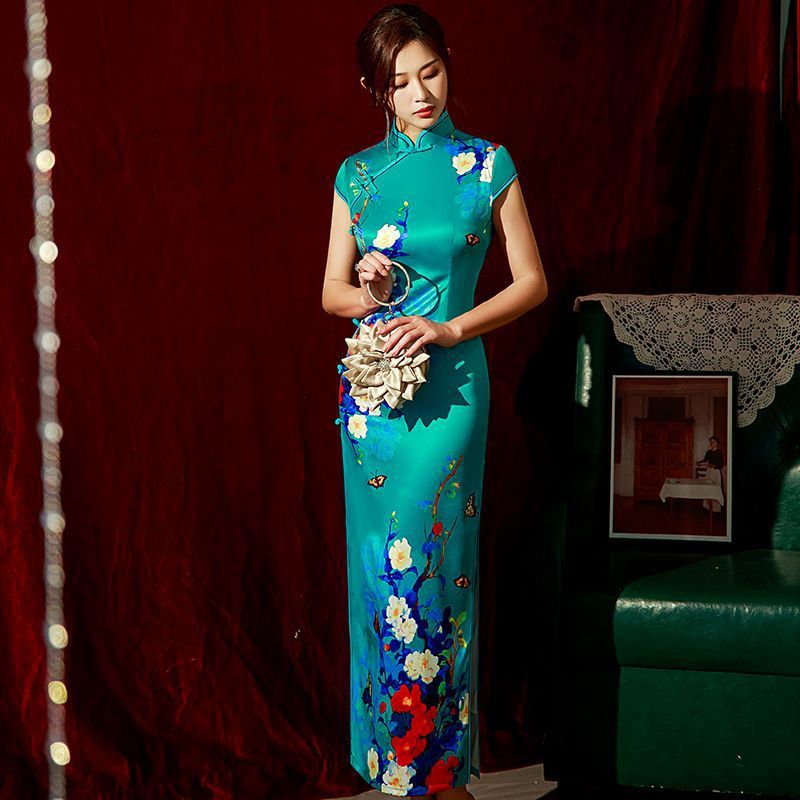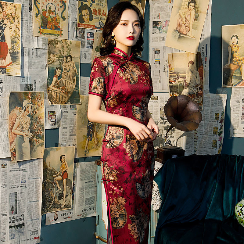 치파오 2022 가을 여름 개선 버전 데일리 실크 복고풍 군사 지배인의 아내 긴 여성 드레스 플러스 사이즈 스타일 도매스토어 가기