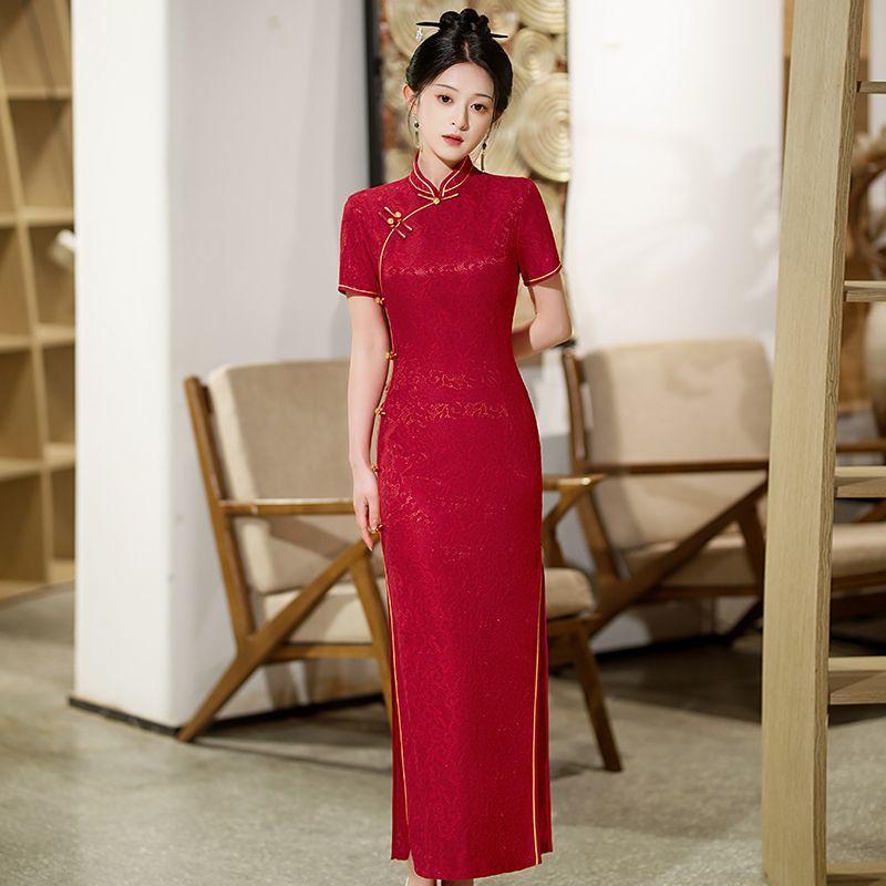 치파오 2022 가을 여름 개선 버전 데일리 실크 복고풍 군사 지배인의 아내 긴 여성 드레스 플러스 사이즈 스타일 도매