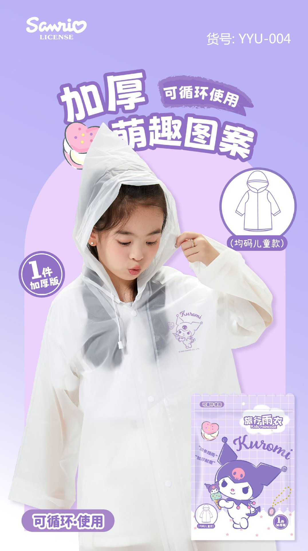 Sanrio 정품 어린이 인쇄 비 일회용 EVA 비옷 두꺼운 방수 판초 야외 여행 휴대용스토어 가기
