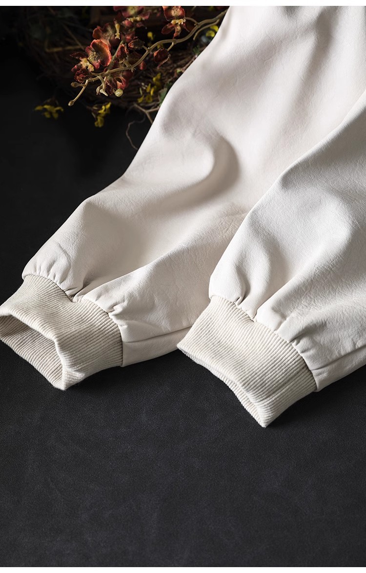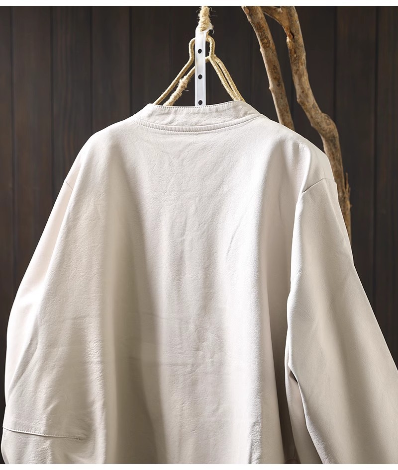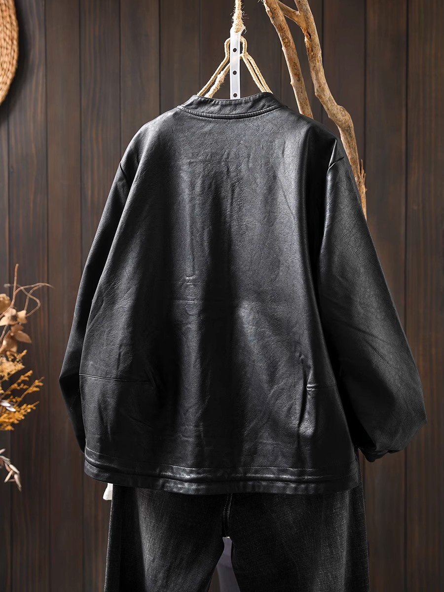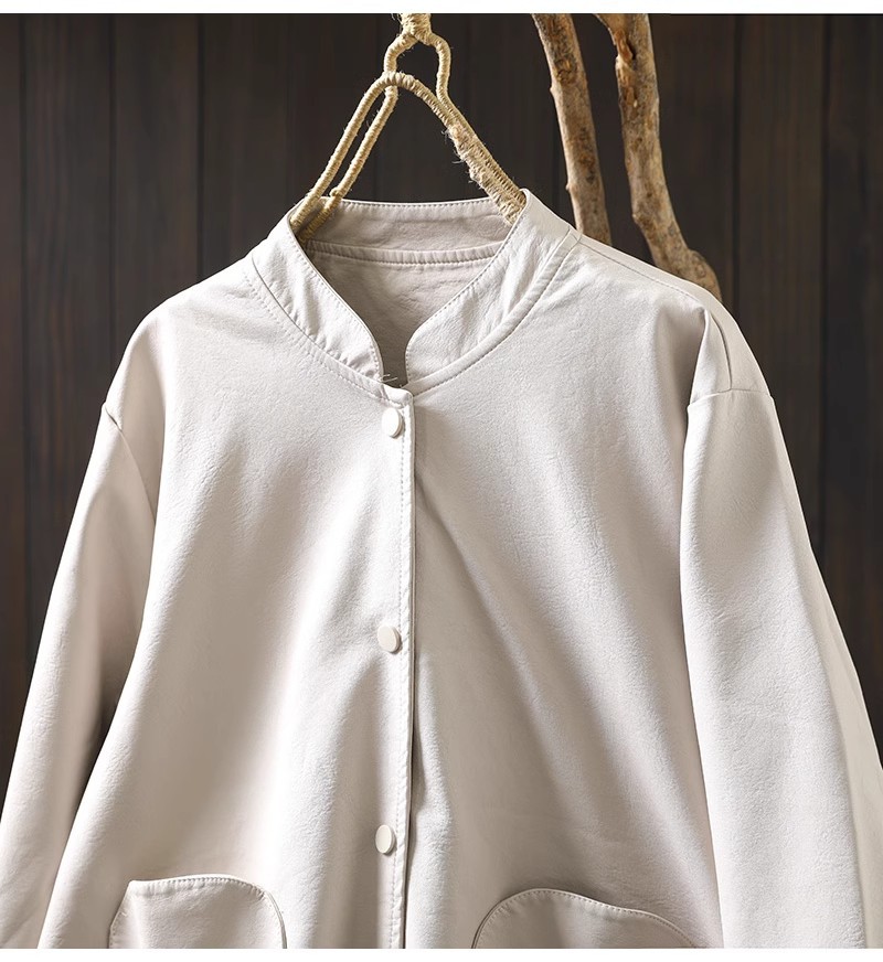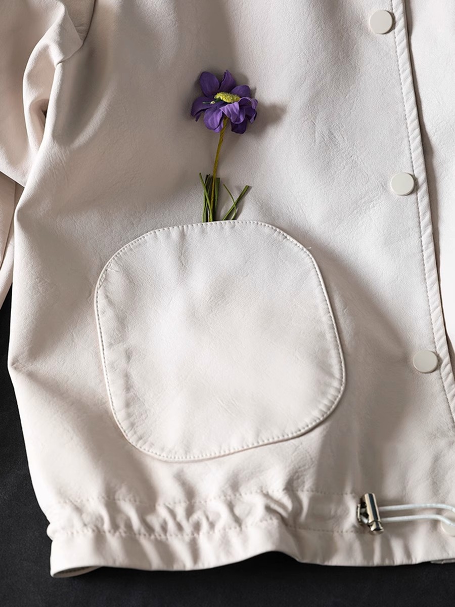하단 드로스트링 부드러운 가죽 PU 가죽 자켓 여성 스탠드 칼라 루즈하고 멋진 봄, 가을 캐주얼 다재다능하고 멋진 자켓 가디건