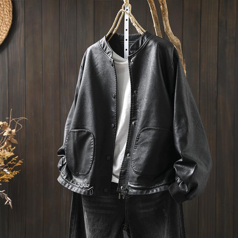 하단 드로스트링 부드러운 가죽 PU 가죽 자켓 여성 스탠드 칼라 루즈하고 멋진 봄, 가을 캐주얼 다재다능하고 멋진 자켓 가디건스토어 가기