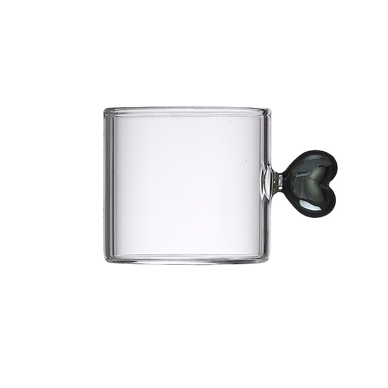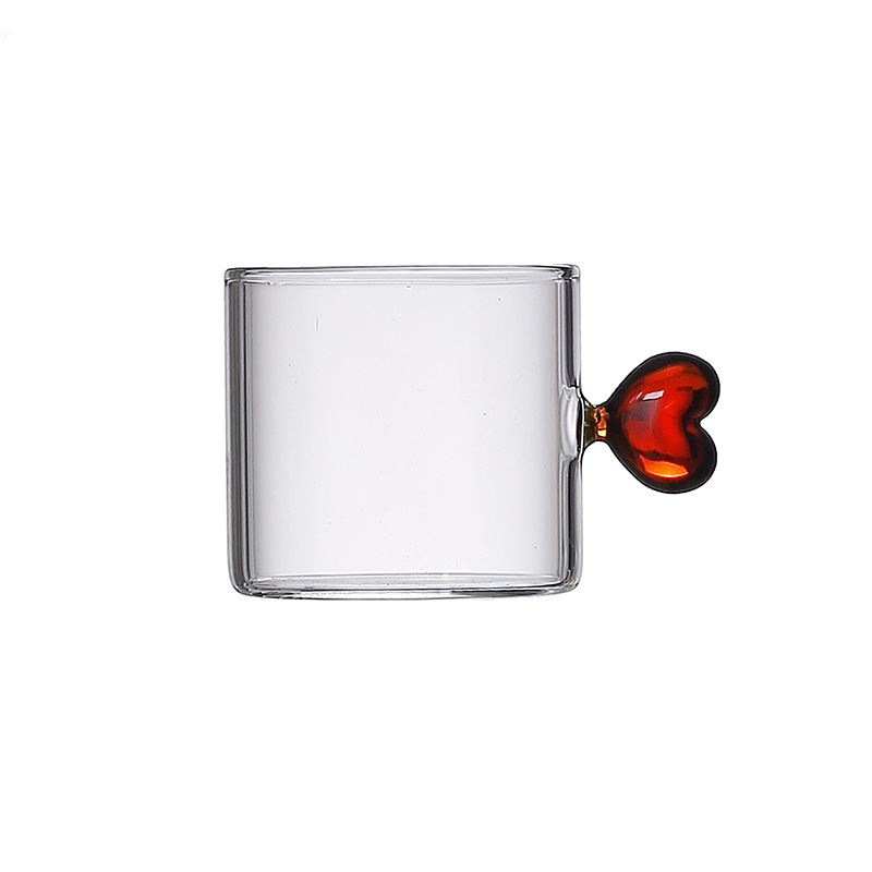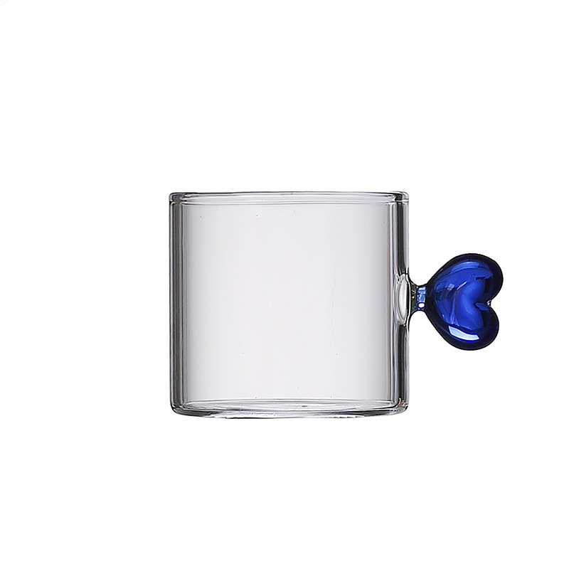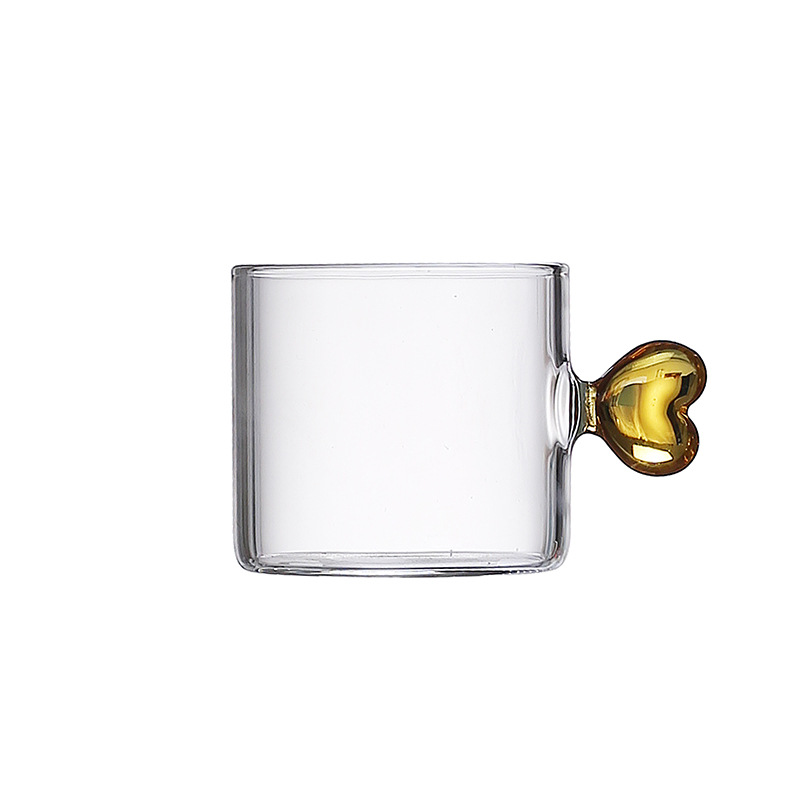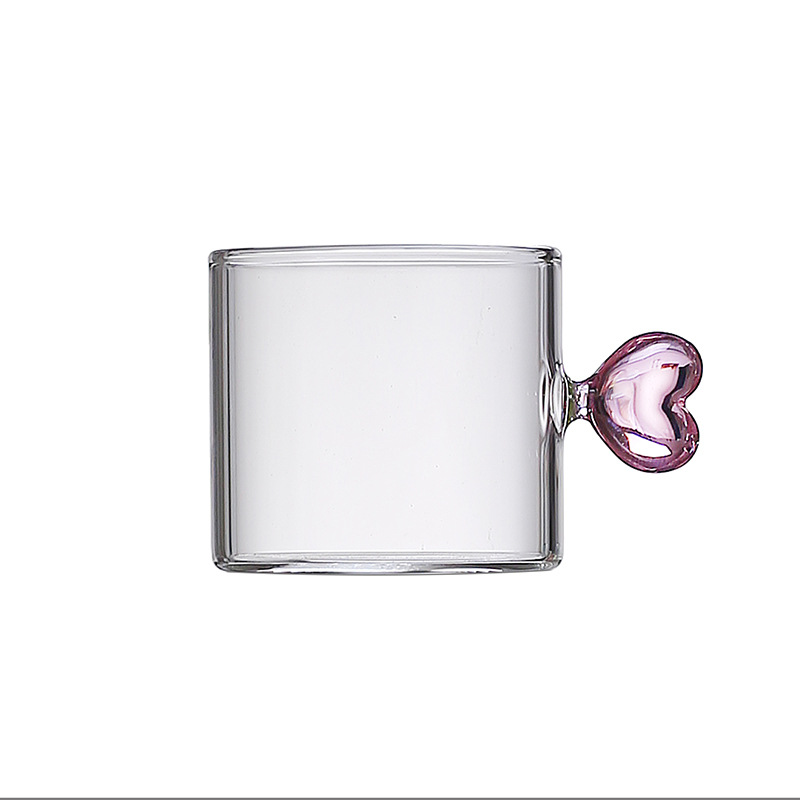 새로운 사랑 손잡이 작은 우유 컵 가정용 유리 작은 차 컵 다채로운 손잡이 투명한 유리 음료 컵 커피 우유 컵
