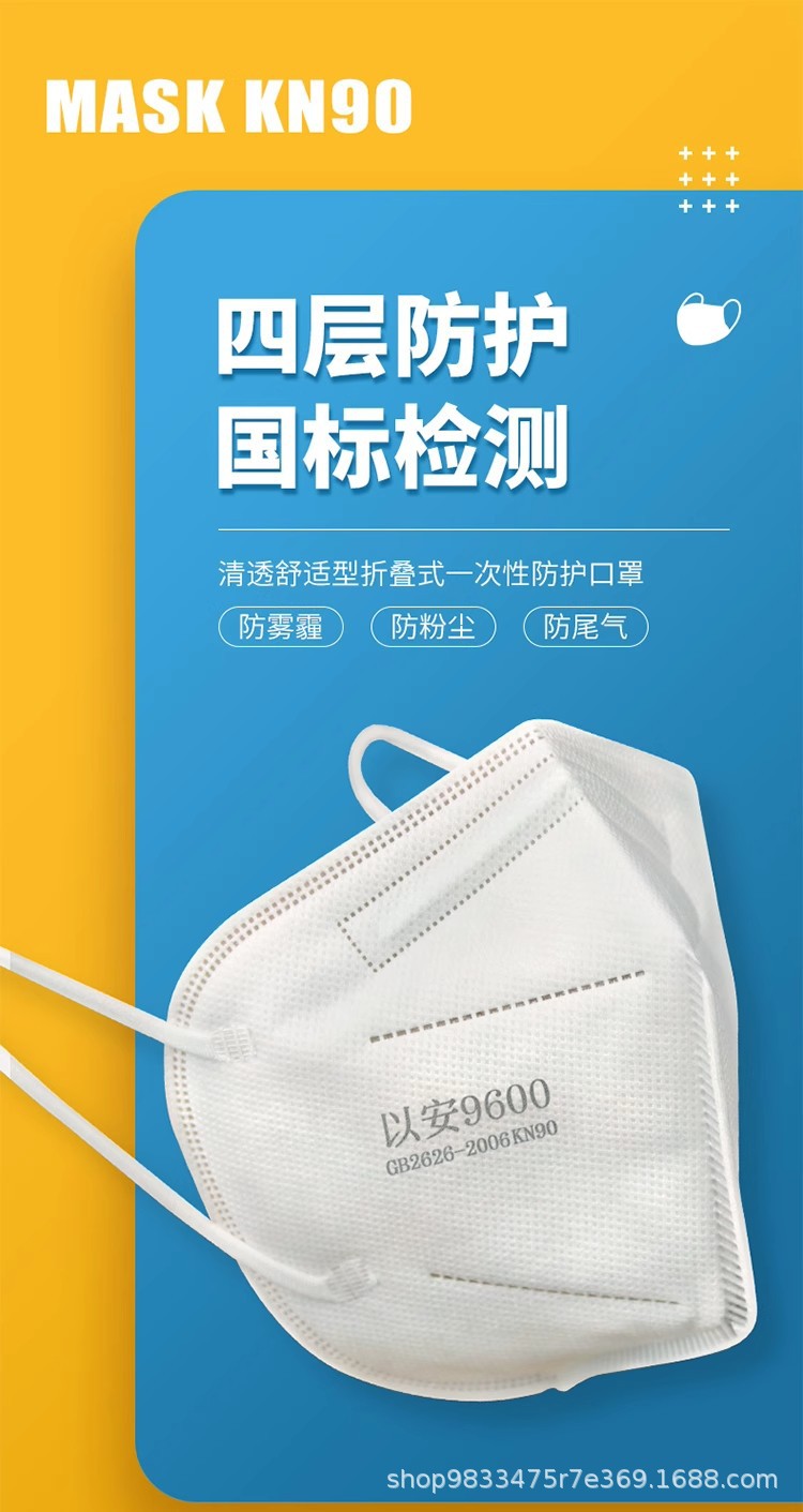 Yian 9600 4층 보호 산업용 방진 마스크 접이식 입 및 코 마스크 KN90 연마 스프레이 페인트 석탄 광산 특수스토어 가기
