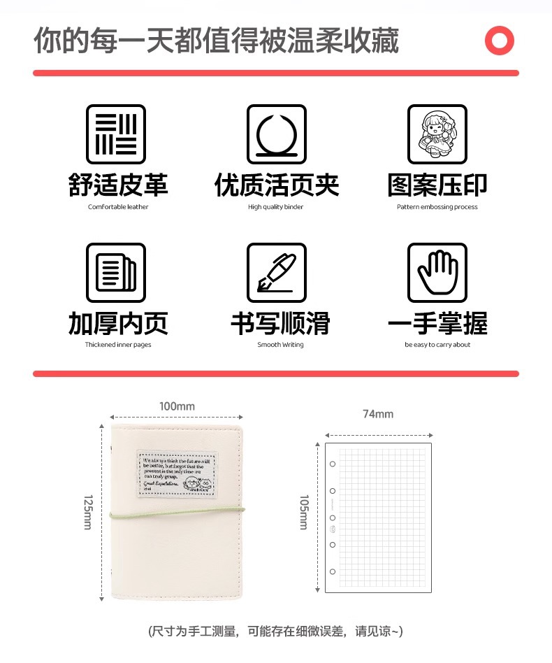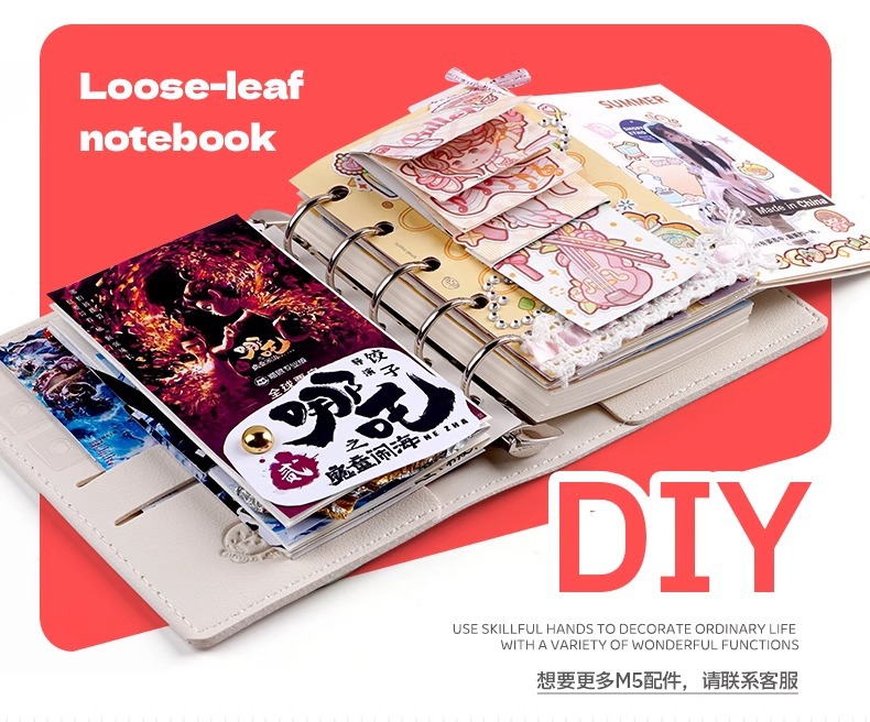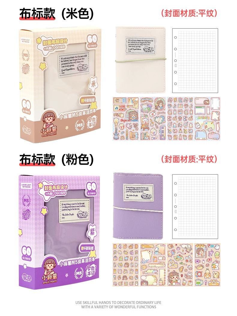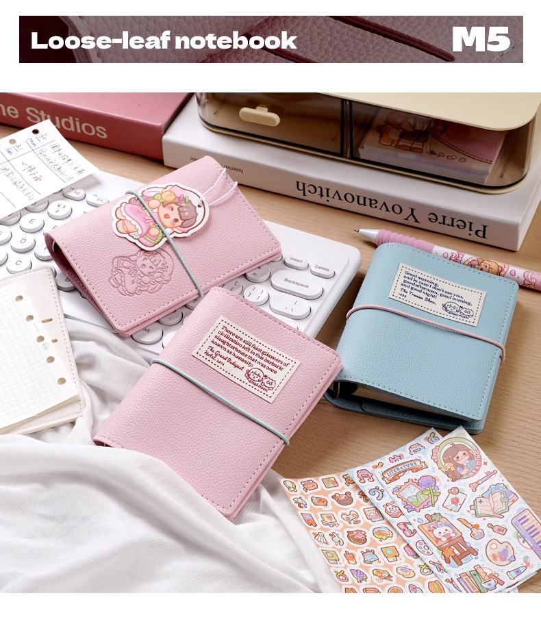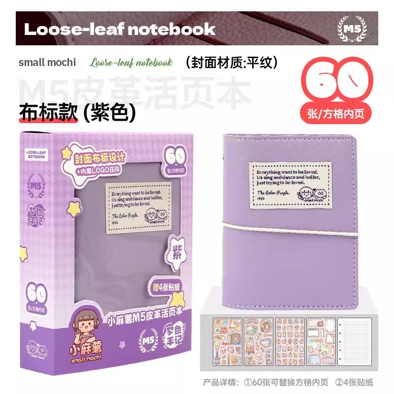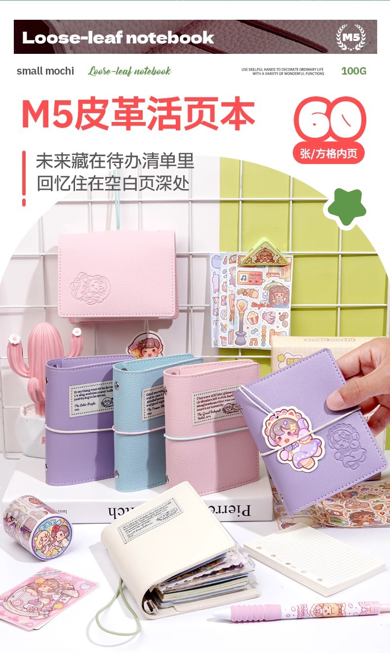 작은 마시멜로 노트, 고급스러운 m5 루스리프, 가죽 메모장, 휴대용 일기장, 수첩