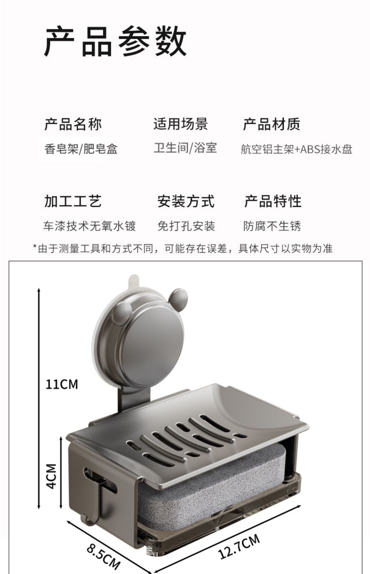 • 그레이 - 흡착컵 이중 비누 접시 [스펀지 닦음 포함]