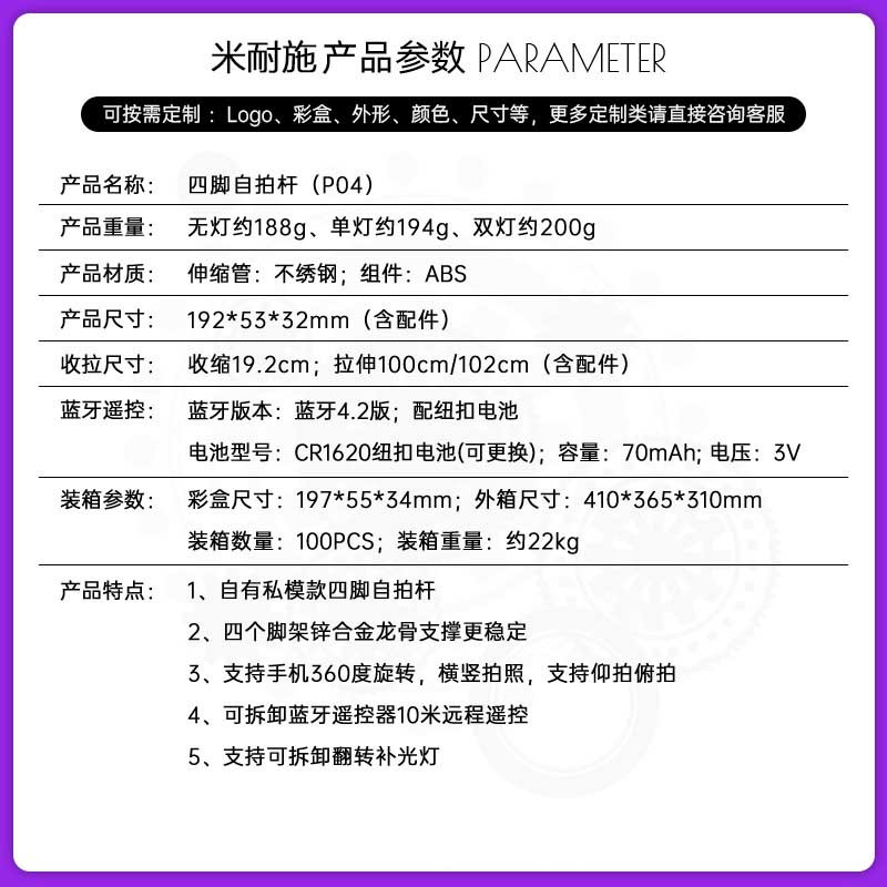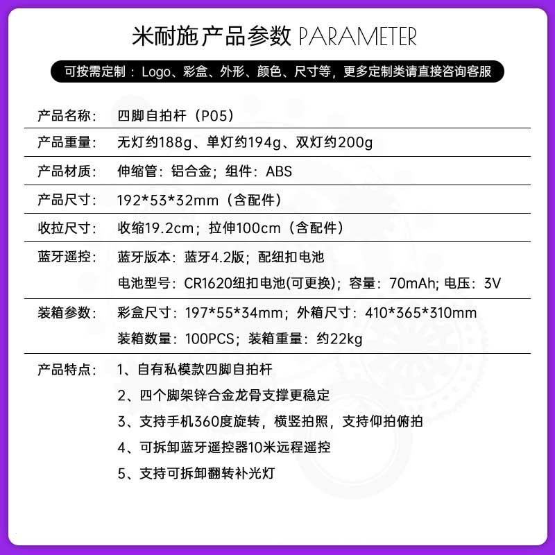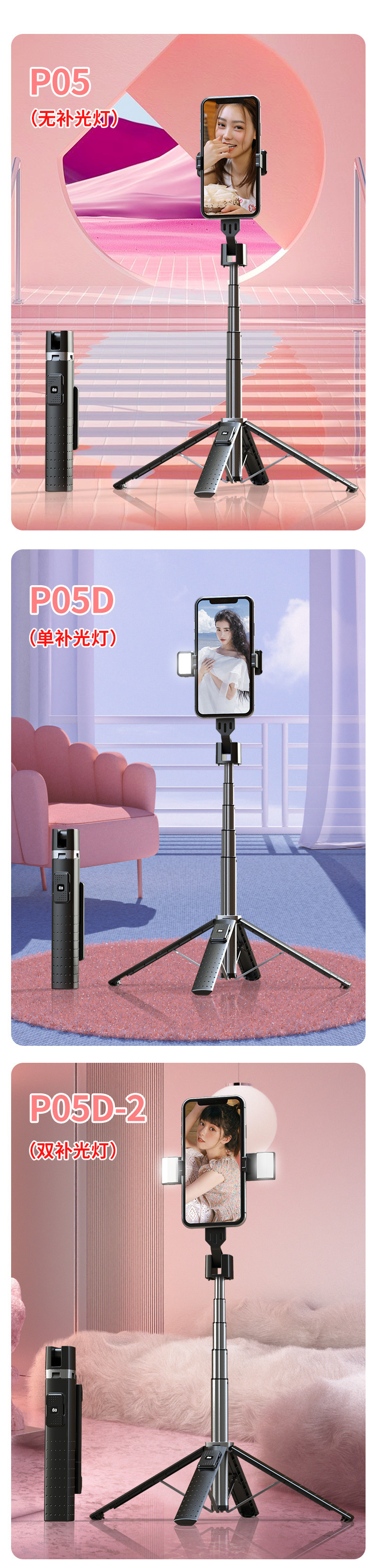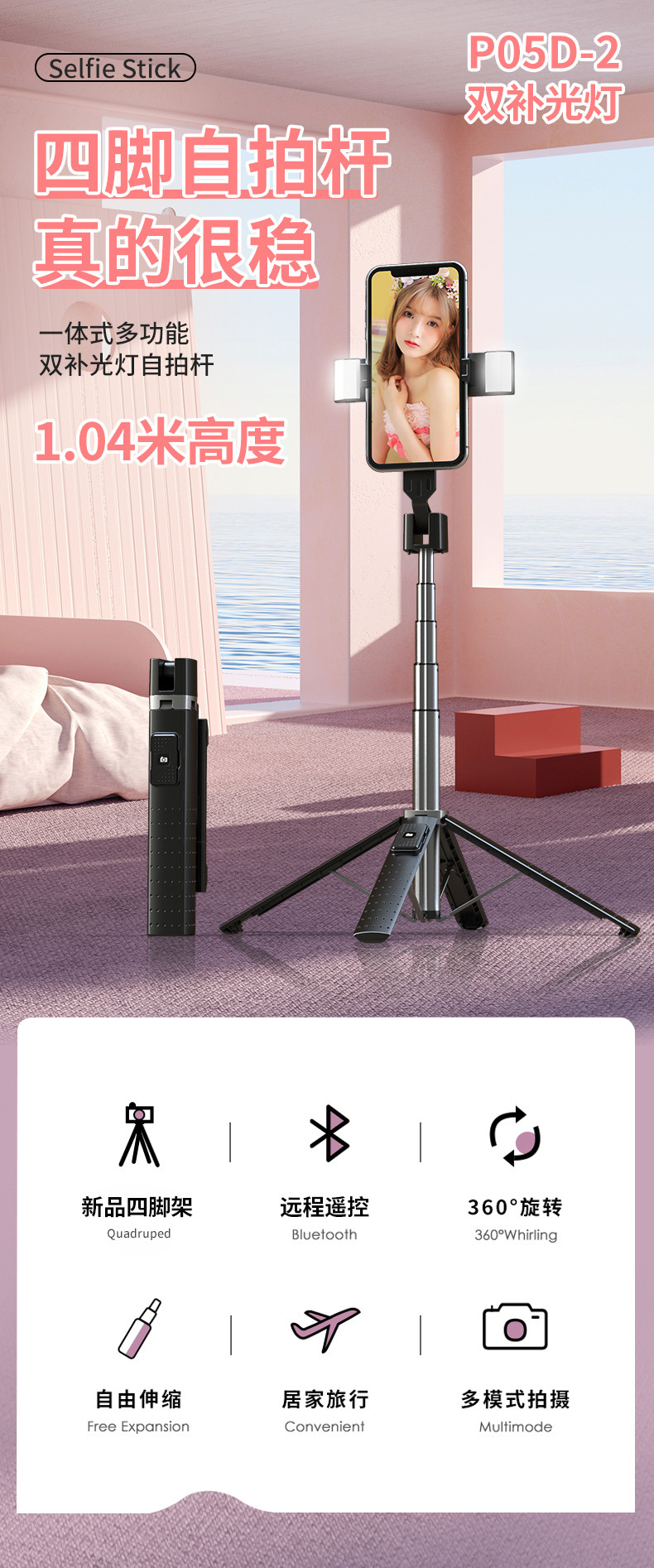 P05 P04 블루투스 휴대 전화 셀카 스틱 강화 4 중 라이브 스탠드 통합 휴대용 바닥 유니버설스토어 가기