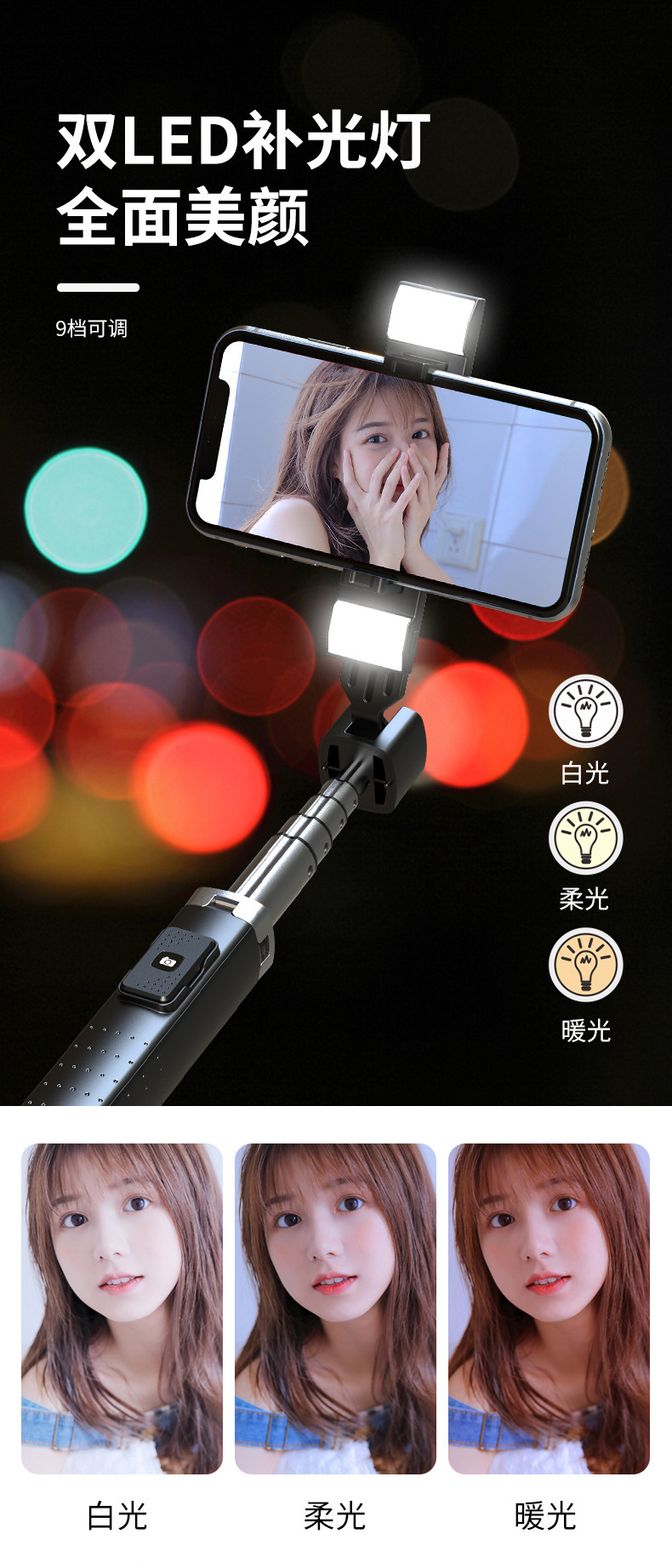 P05 P04 블루투스 휴대 전화 셀카 스틱 강화 4 중 라이브 스탠드 통합 휴대용 바닥 유니버설
