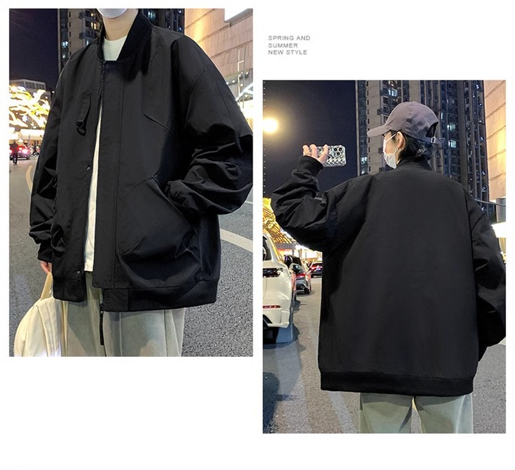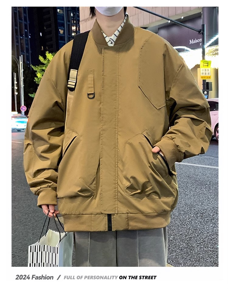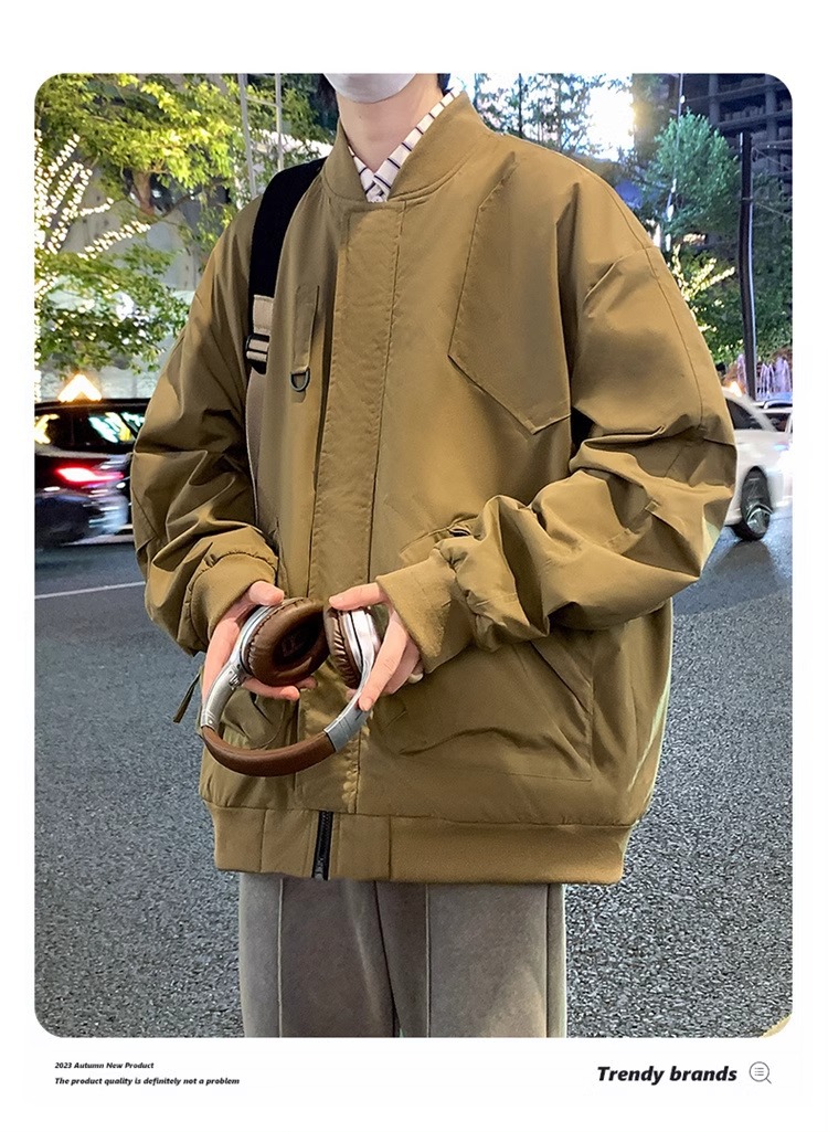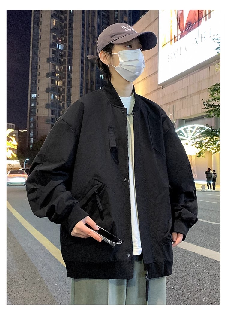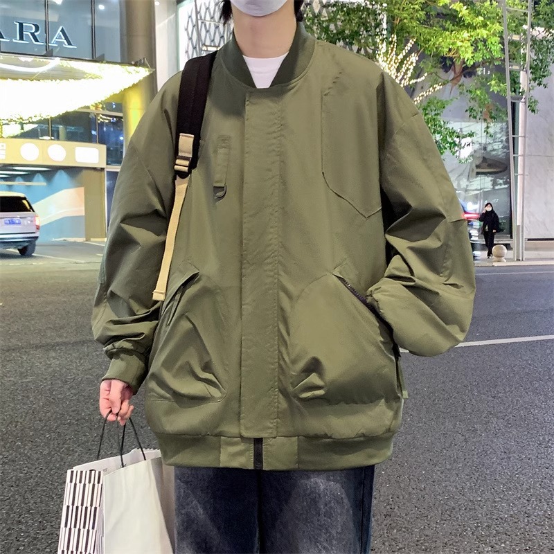 NASA 봄 신작 홍콩 스타일 스탠드 칼라 재킷 루즈한 대형 뚱뚱한 솔리드 컬러 파일럿 야구 재킷스토어 가기