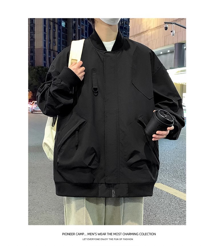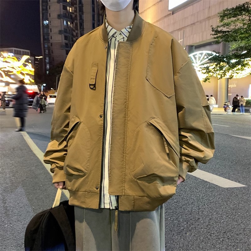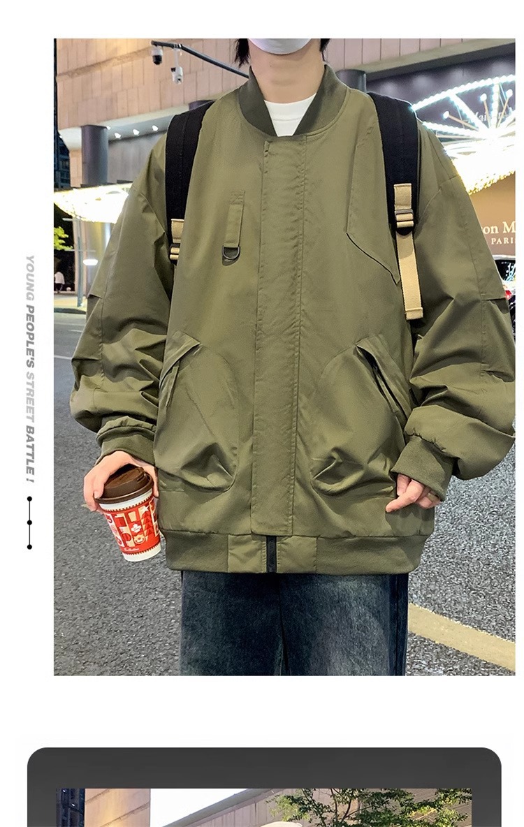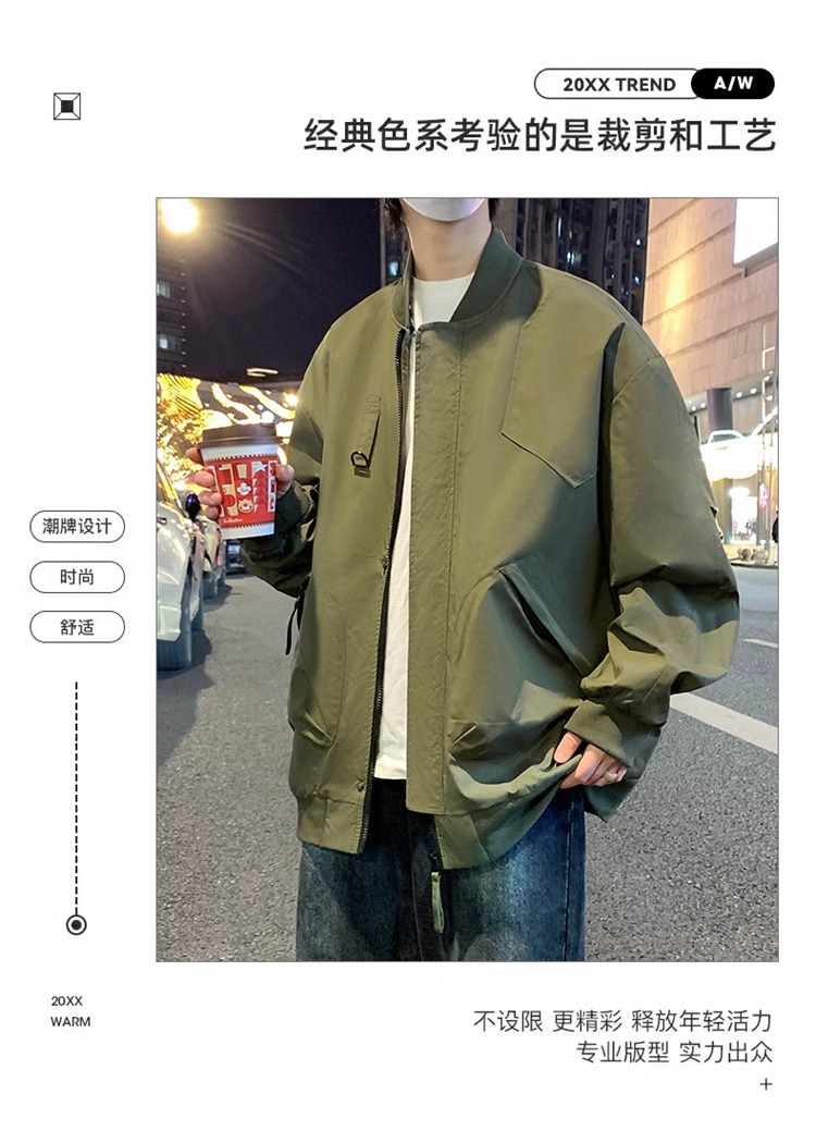 NASA 봄 신작 홍콩 스타일 스탠드 칼라 재킷 루즈한 대형 뚱뚱한 솔리드 컬러 파일럿 야구 재킷스토어 가기