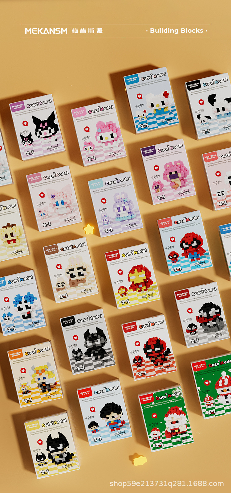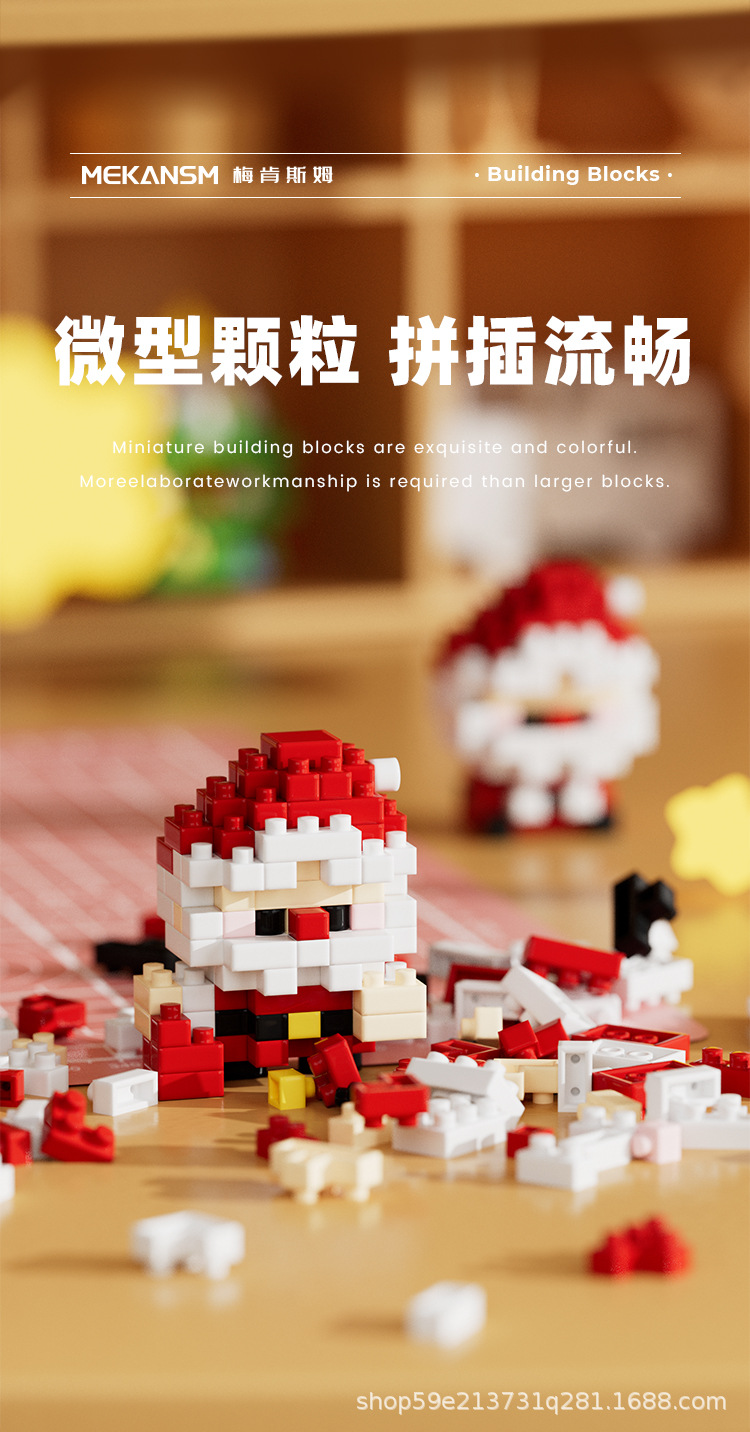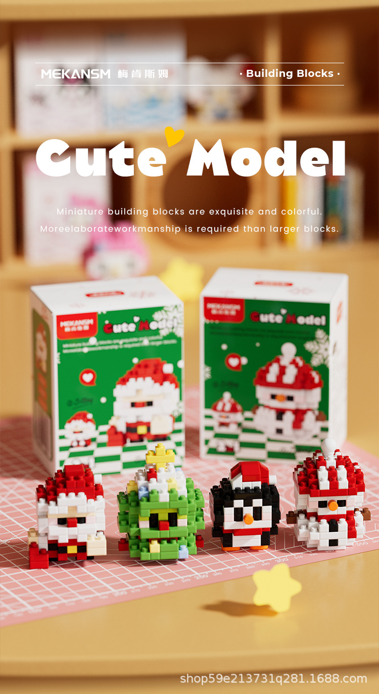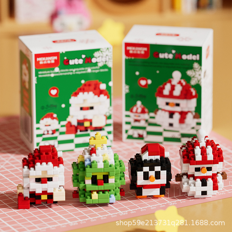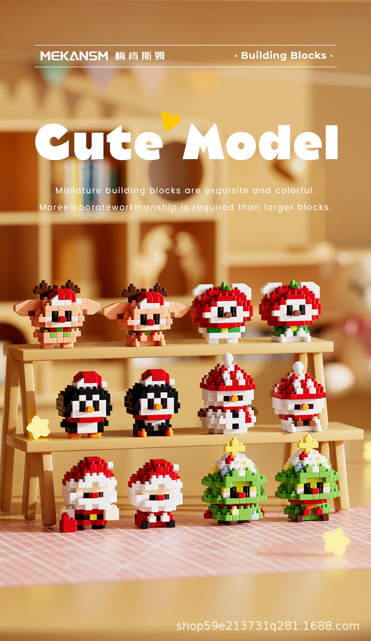 Mekensm 2024 크리스마스 작은 입자 만화 Q 버전 인형 어린이 장난감 빌딩 블록 드롭 배송