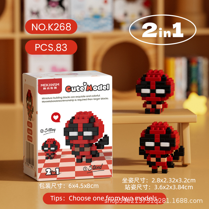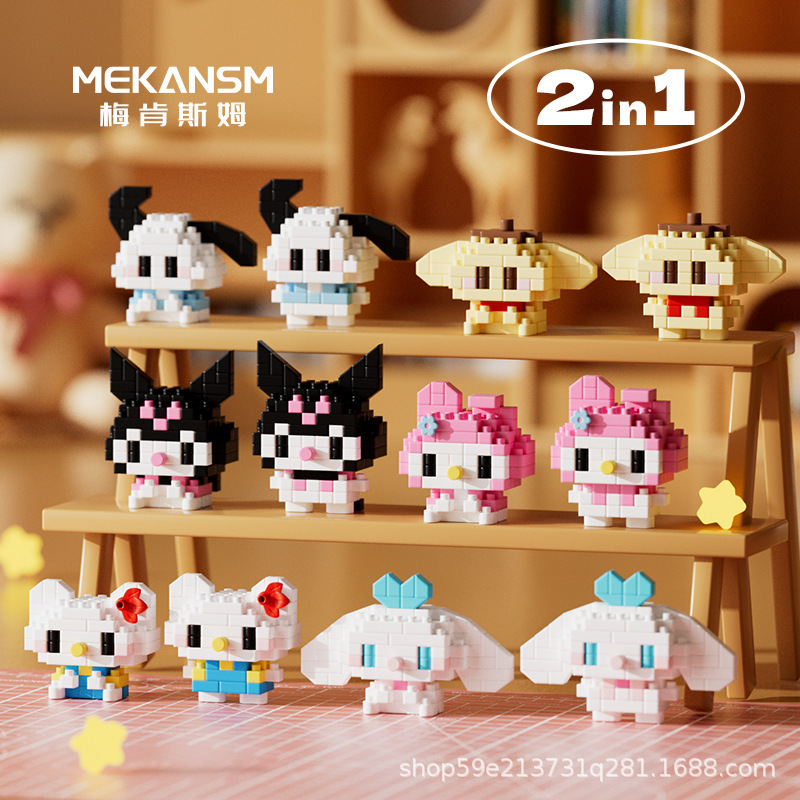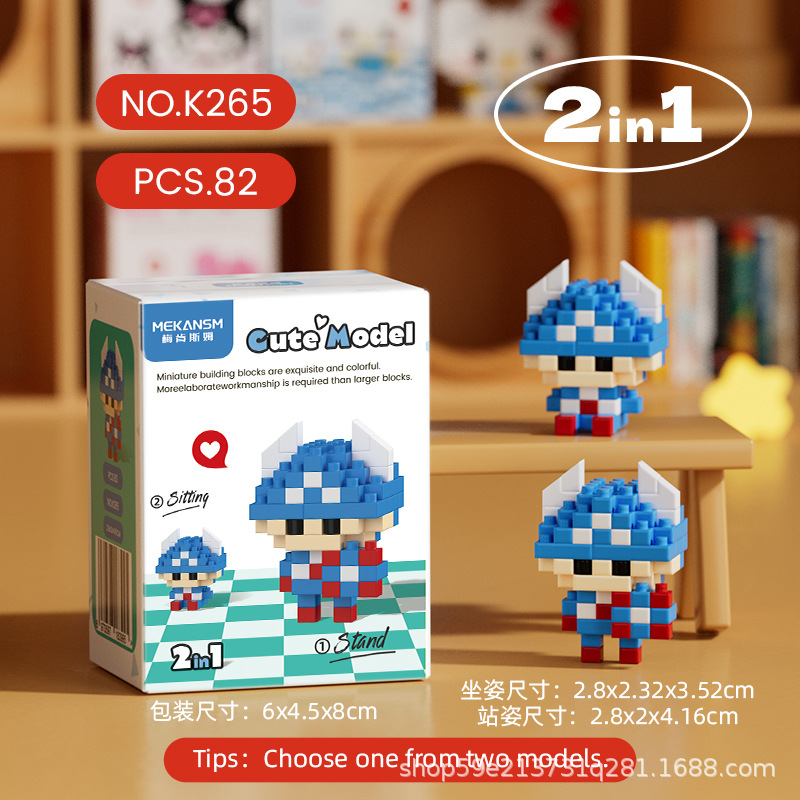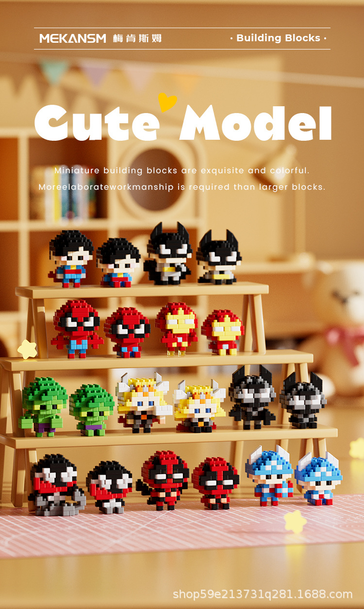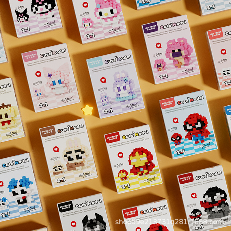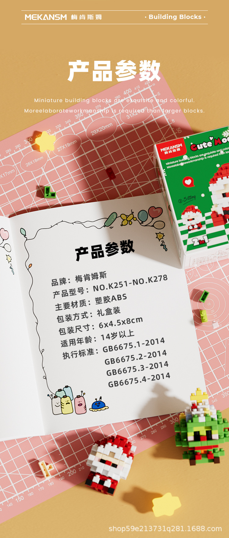 Mekensm 2024 크리스마스 작은 입자 만화 Q 버전 인형 어린이 장난감 빌딩 블록 드롭 배송