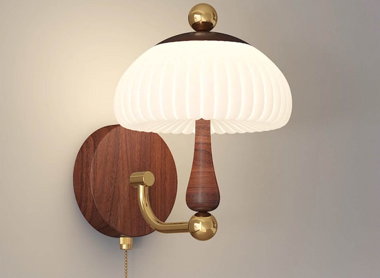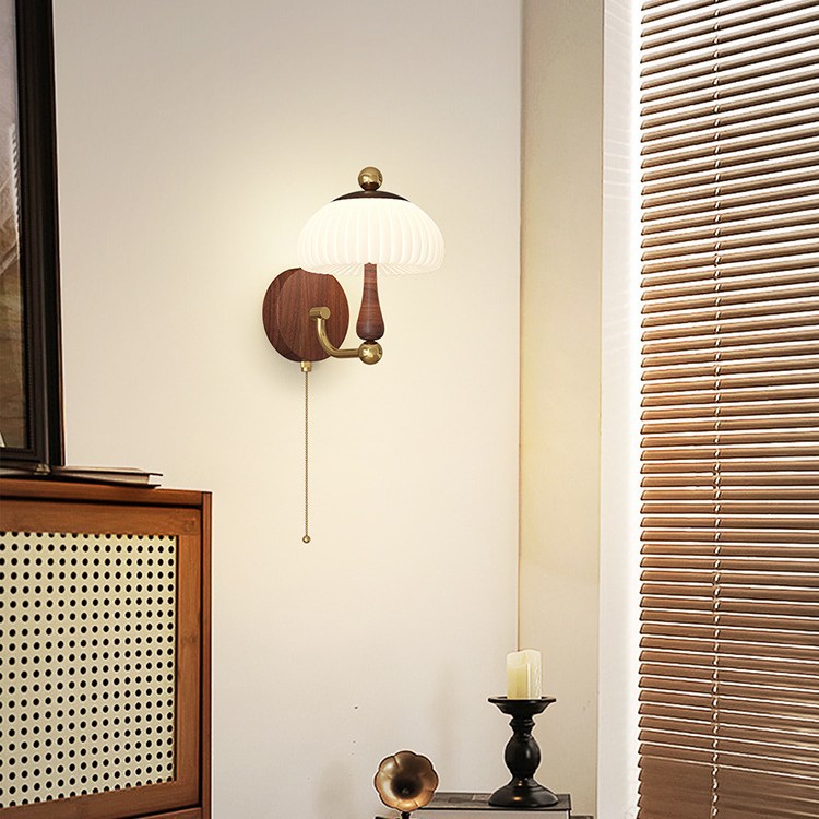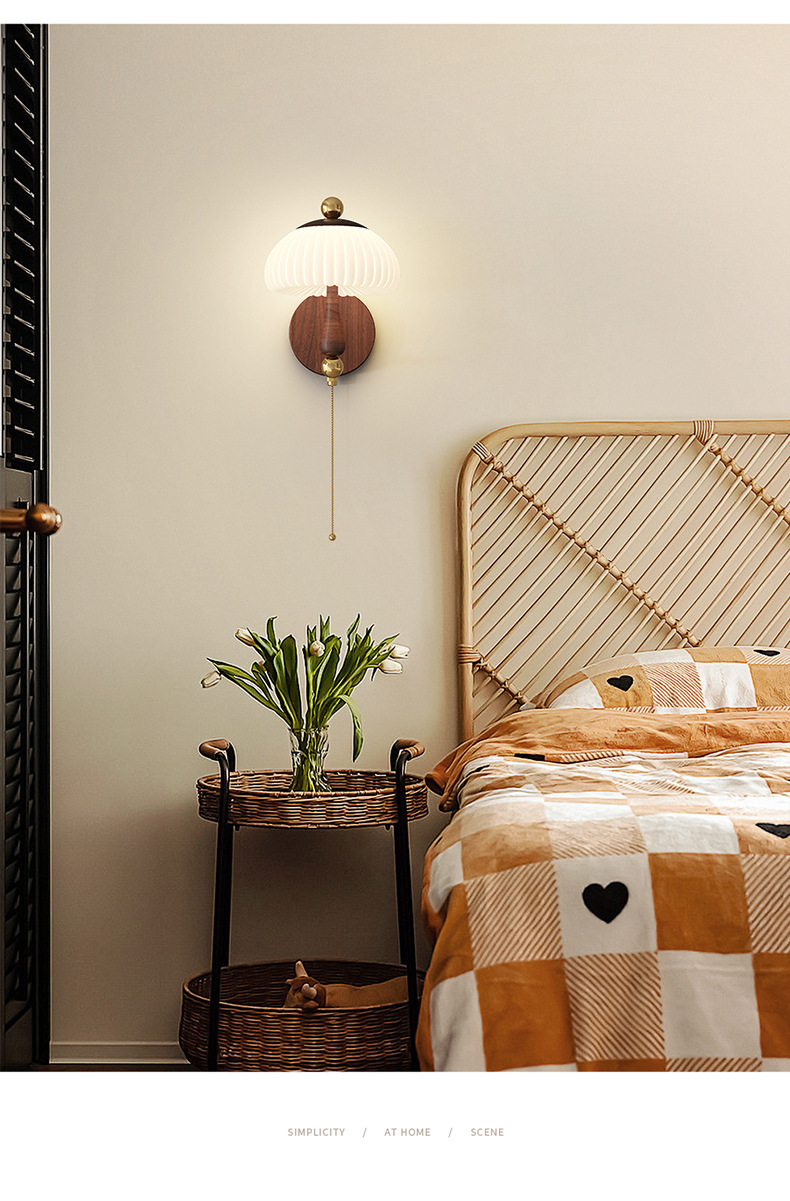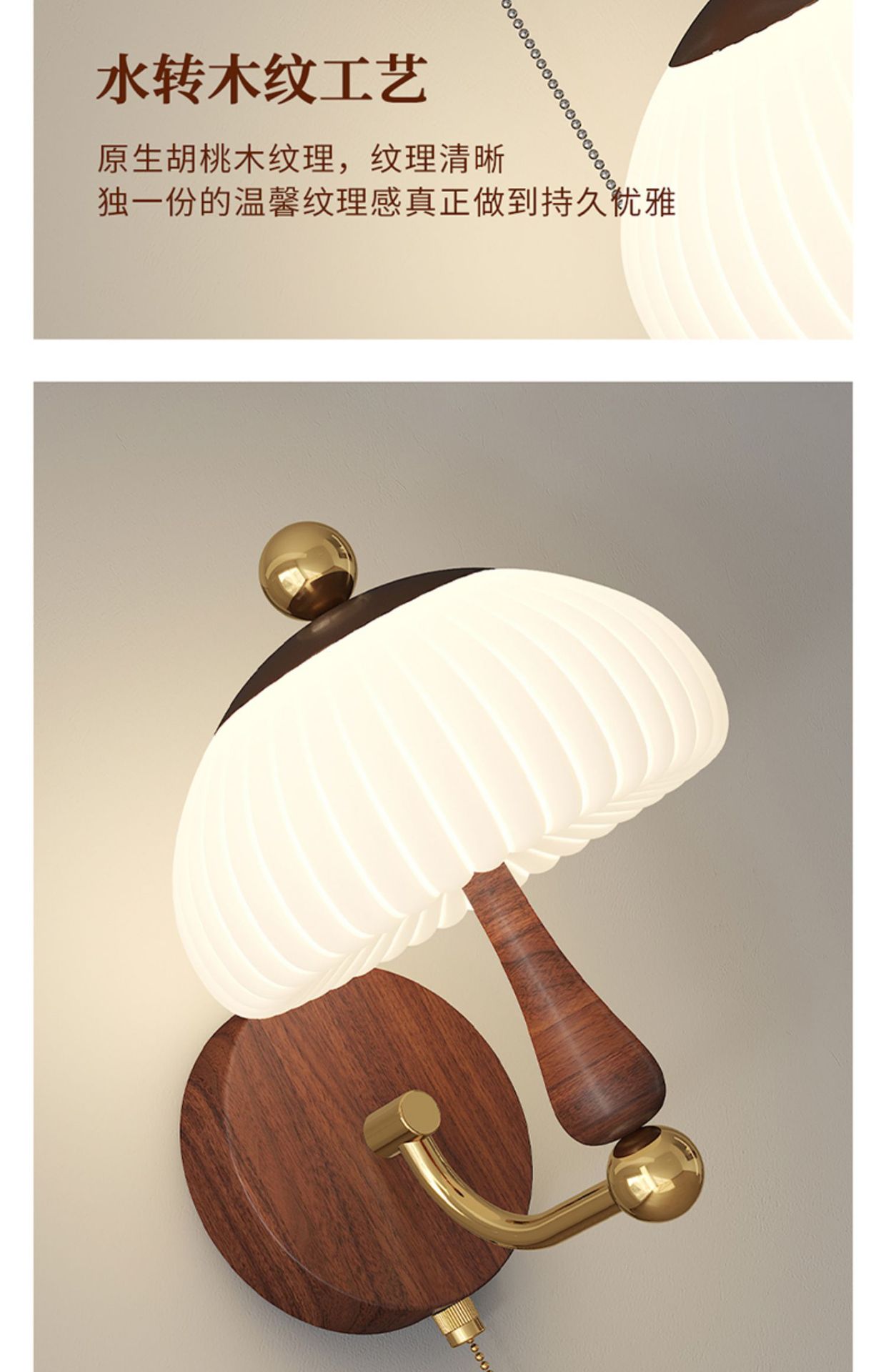 중세 크림 스타일 침실 머리맡 램프 버섯 벽 램프 따뜻한 복고풍 어린이 방 램프스토어 가기