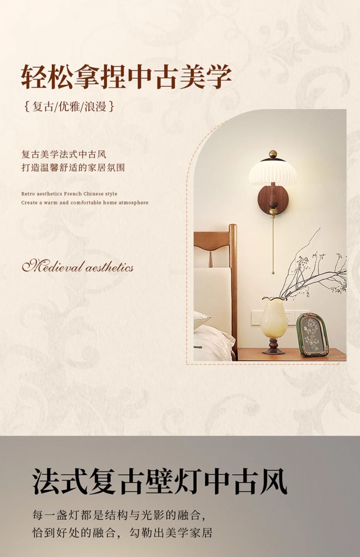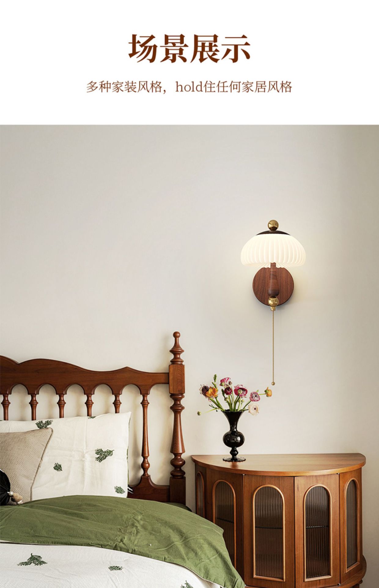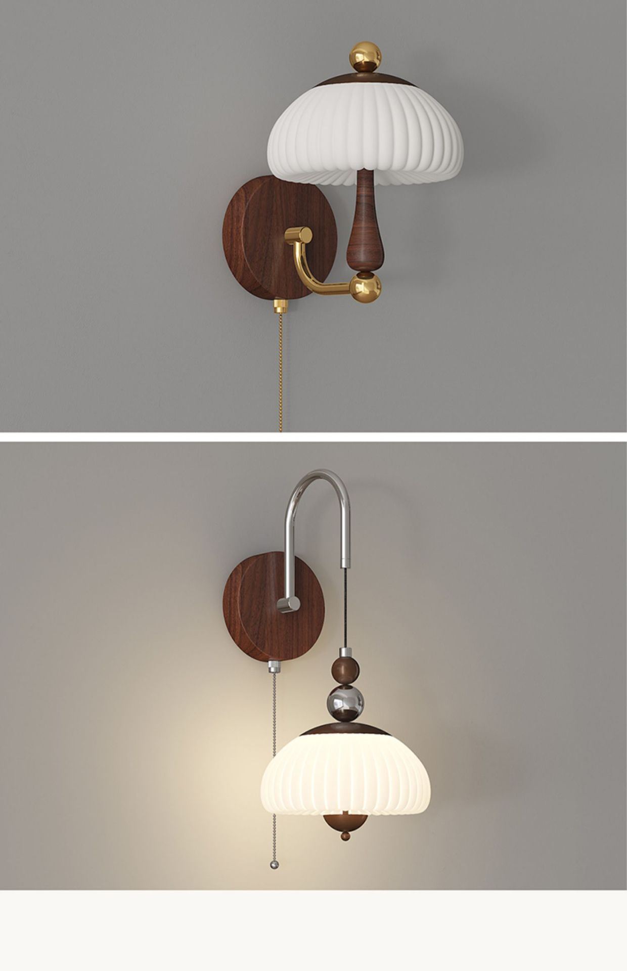 중세 크림 스타일 침실 머리맡 램프 버섯 벽 램프 따뜻한 복고풍 어린이 방 램프스토어 가기