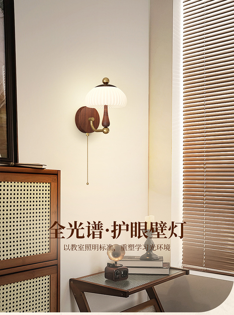 중세 크림 스타일 침실 머리맡 램프 버섯 벽 램프 따뜻한 복고풍 어린이 방 램프