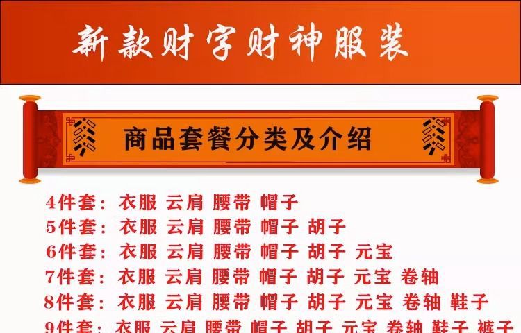 새로운 부의 신 의상 회사 신년 파티 개회식 축하 의상 코스프레 할로윈 풀 세트스토어 가기