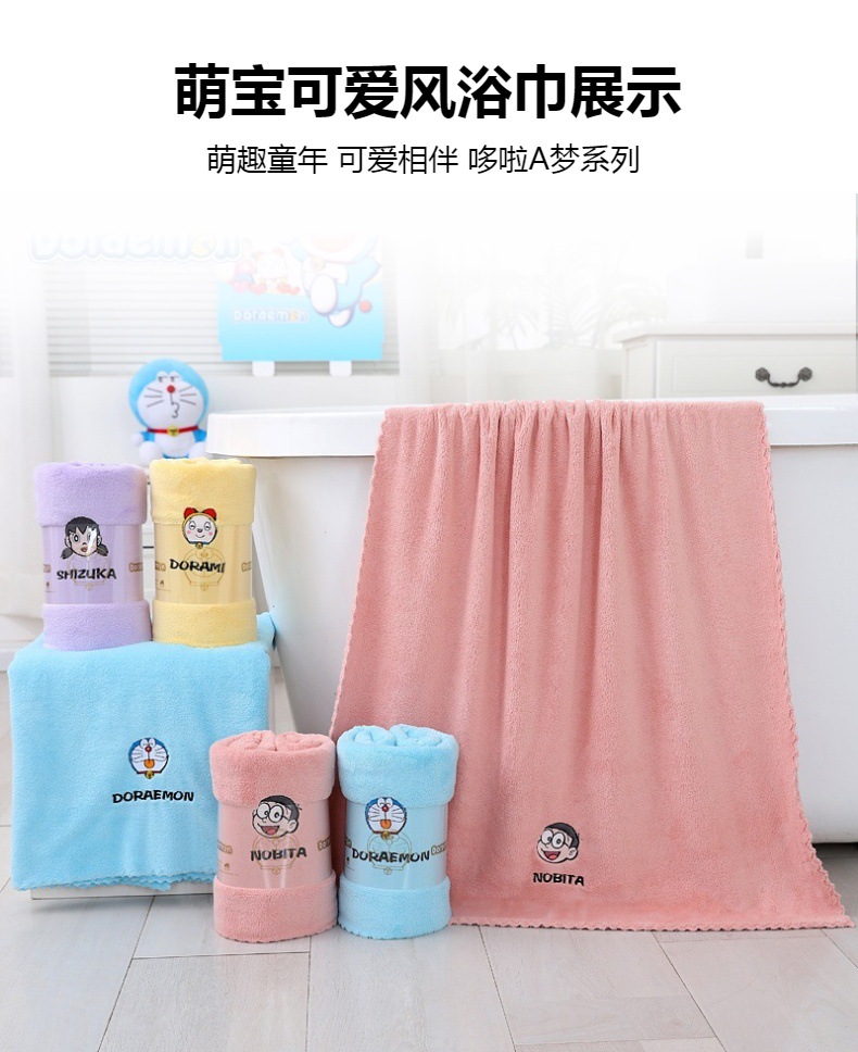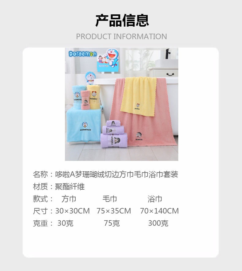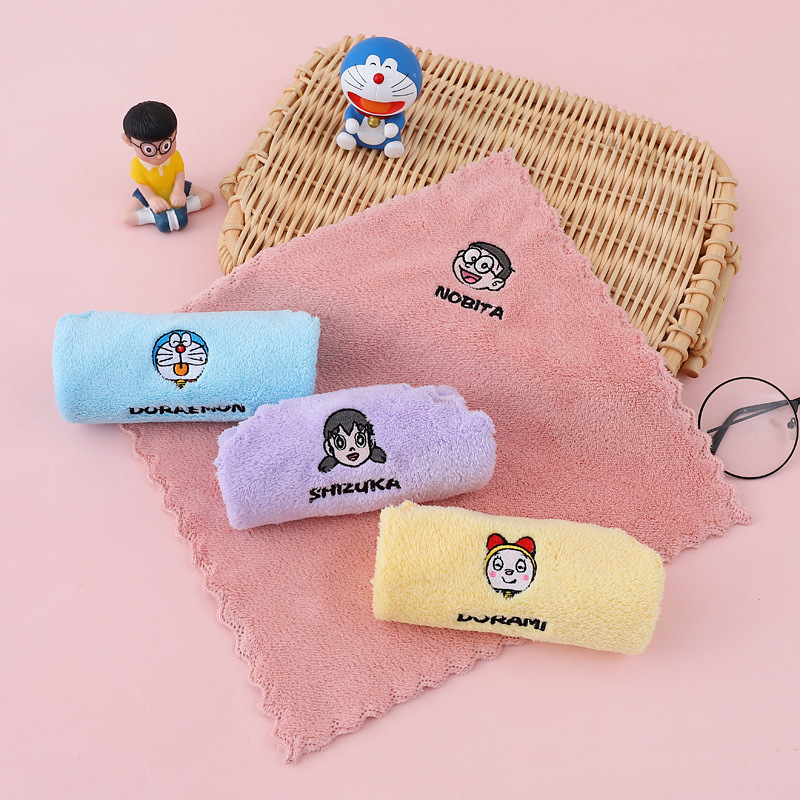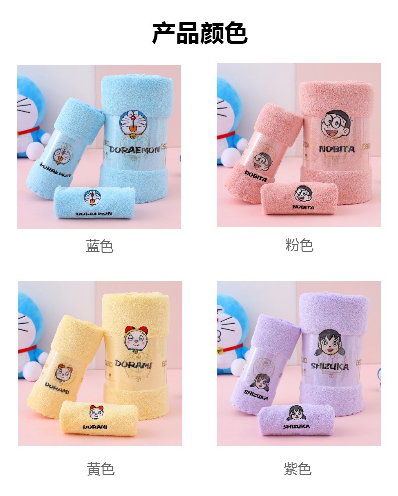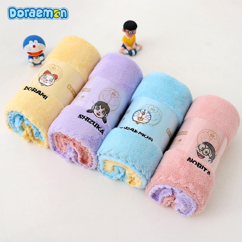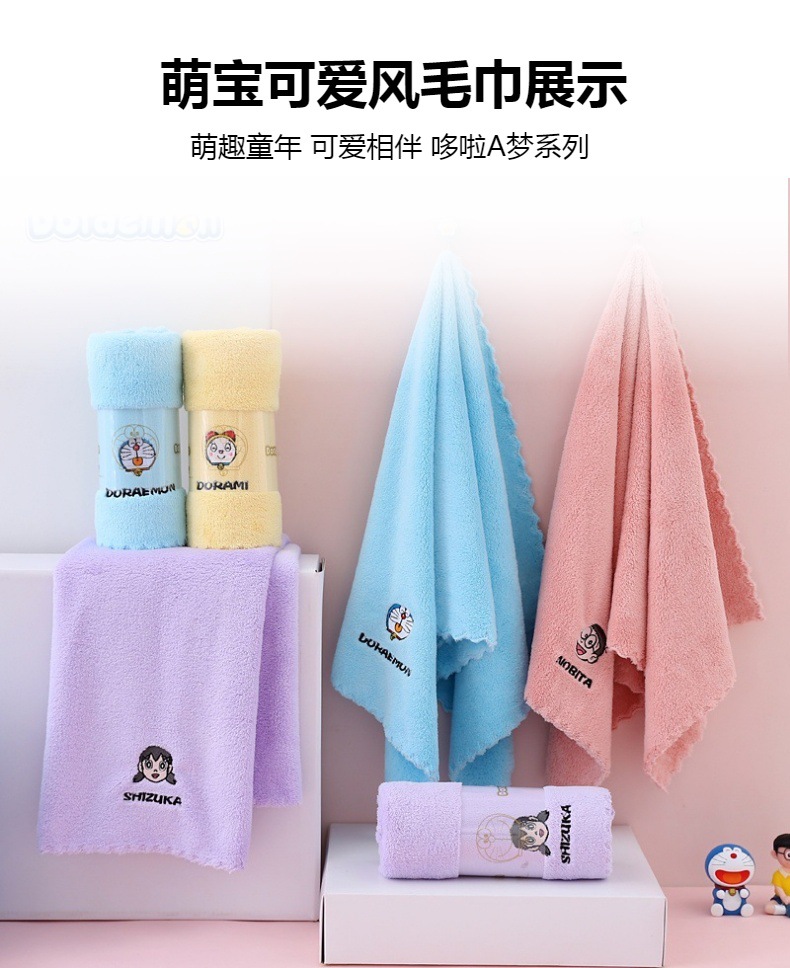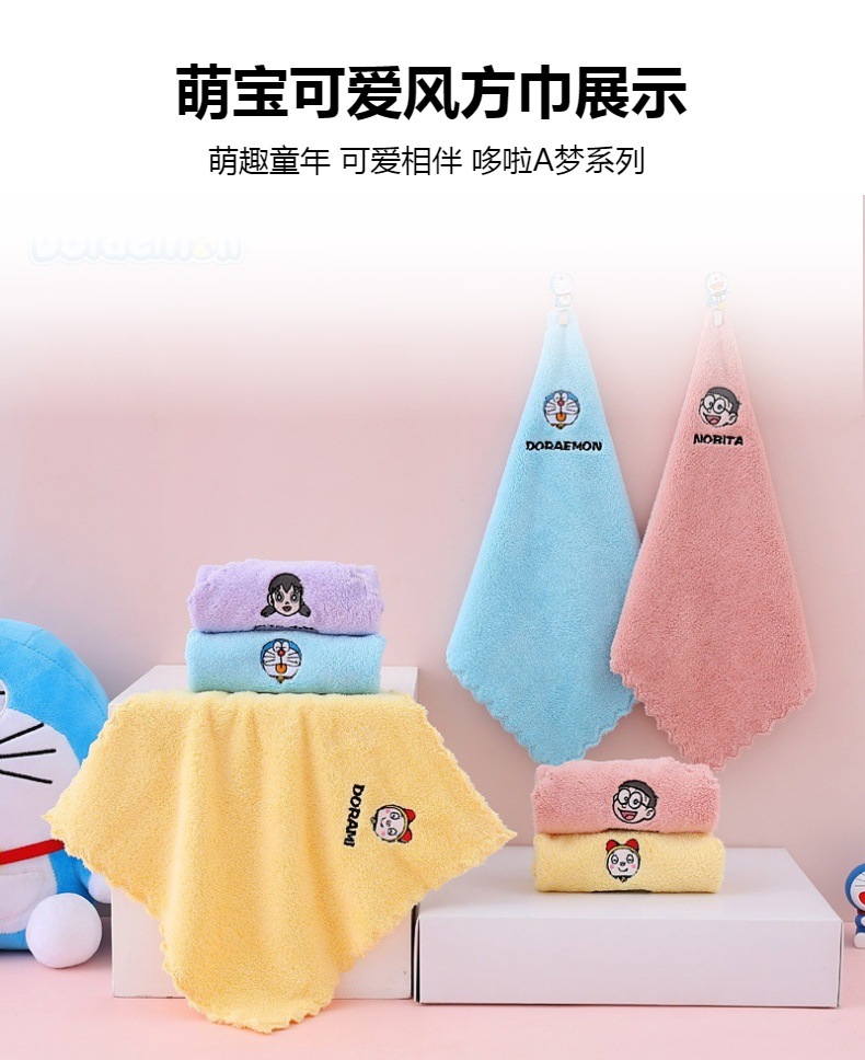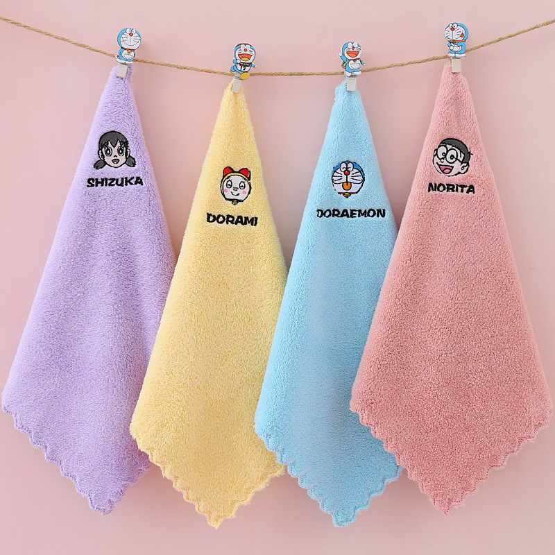 도라에몽 산호 양털 절단 수건 세트 귀여운 만화 자수 얼굴 수건 부드러운 흡수성 선물 수건스토어 가기