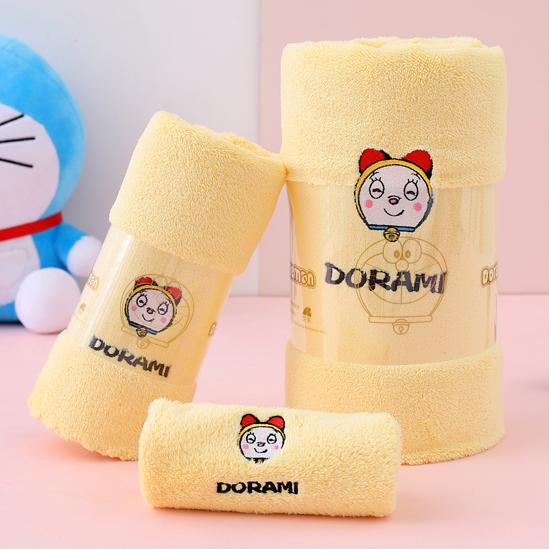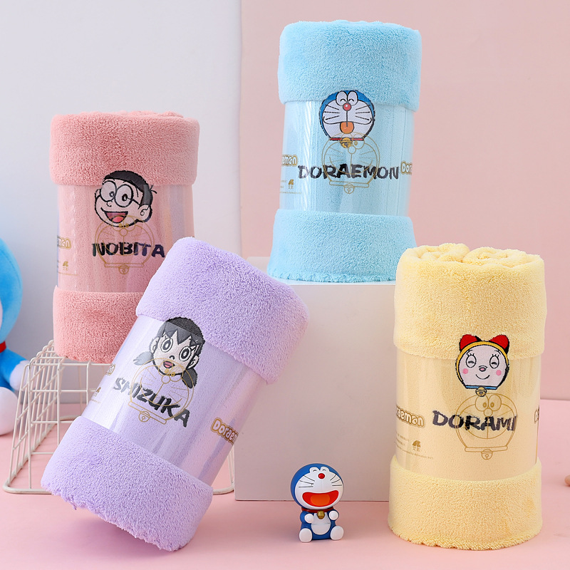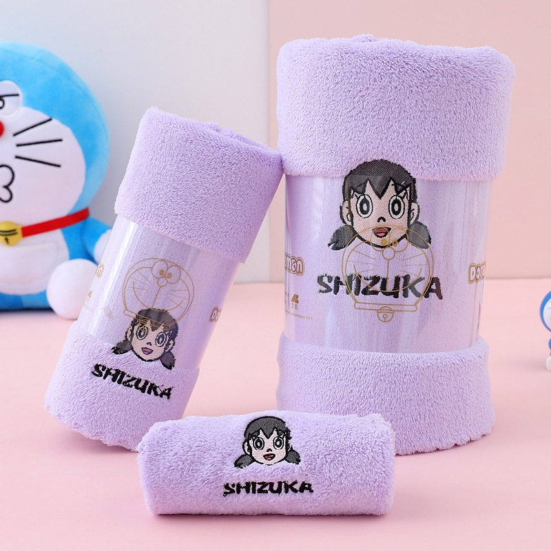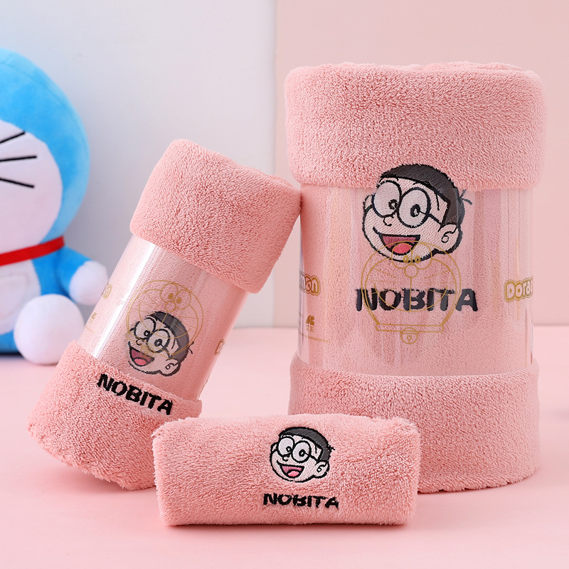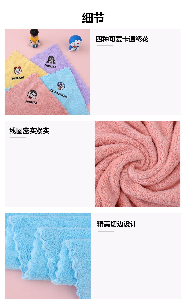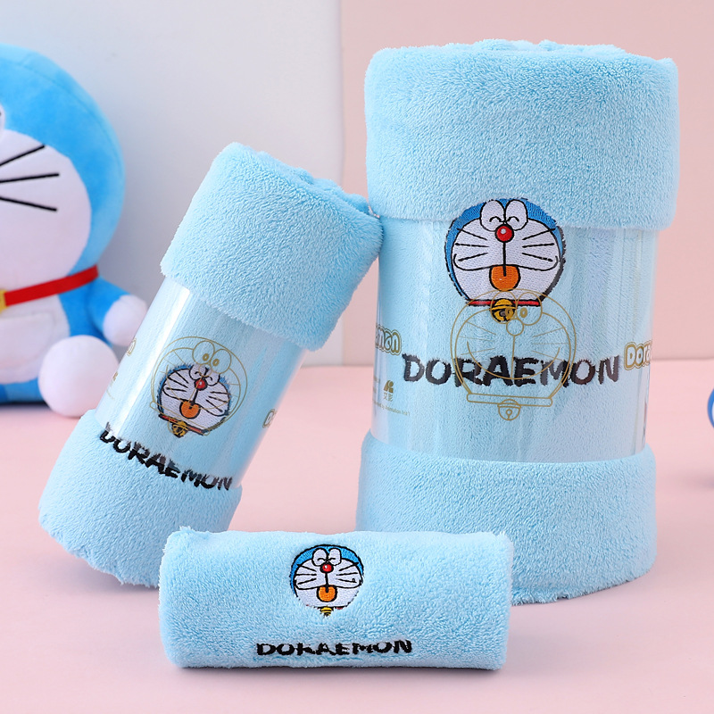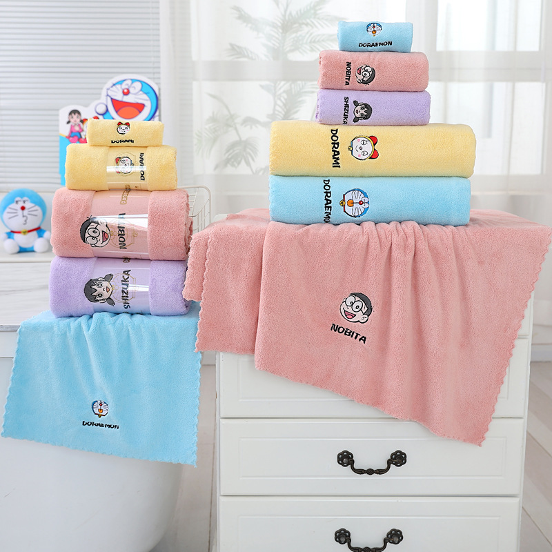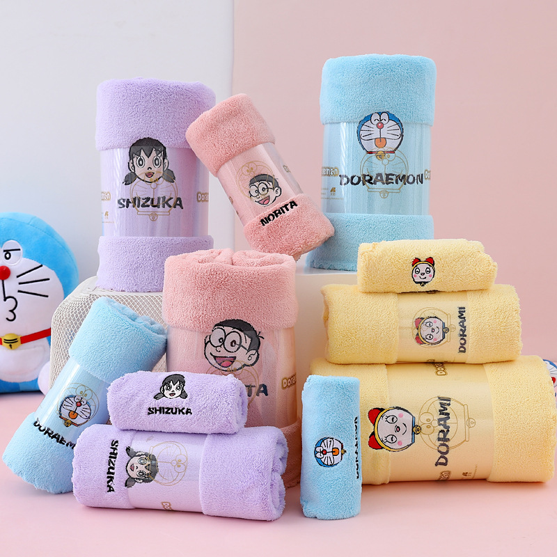 도라에몽 산호 양털 절단 수건 세트 귀여운 만화 자수 얼굴 수건 부드러운 흡수성 선물 수건