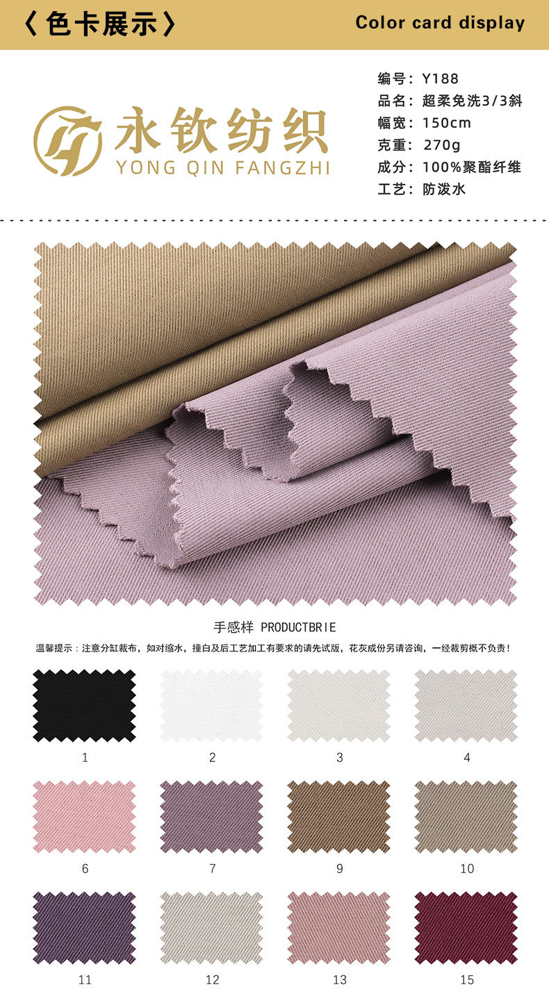 두꺼운 초극세사 노워시 3/3 사선 직물, 폴리에스터 내마모성 원단, 태양광 차단 모자, 스트레이트 팬츠 의류 원단스토어 가기