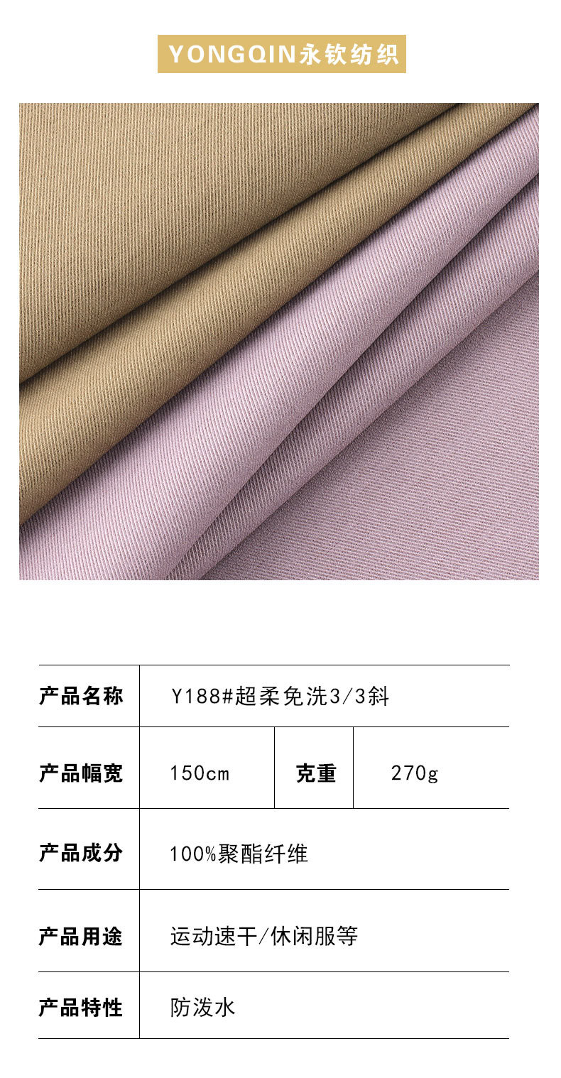 두꺼운 초극세사 노워시 3/3 사선 직물, 폴리에스터 내마모성 원단, 태양광 차단 모자, 스트레이트 팬츠 의류 원단