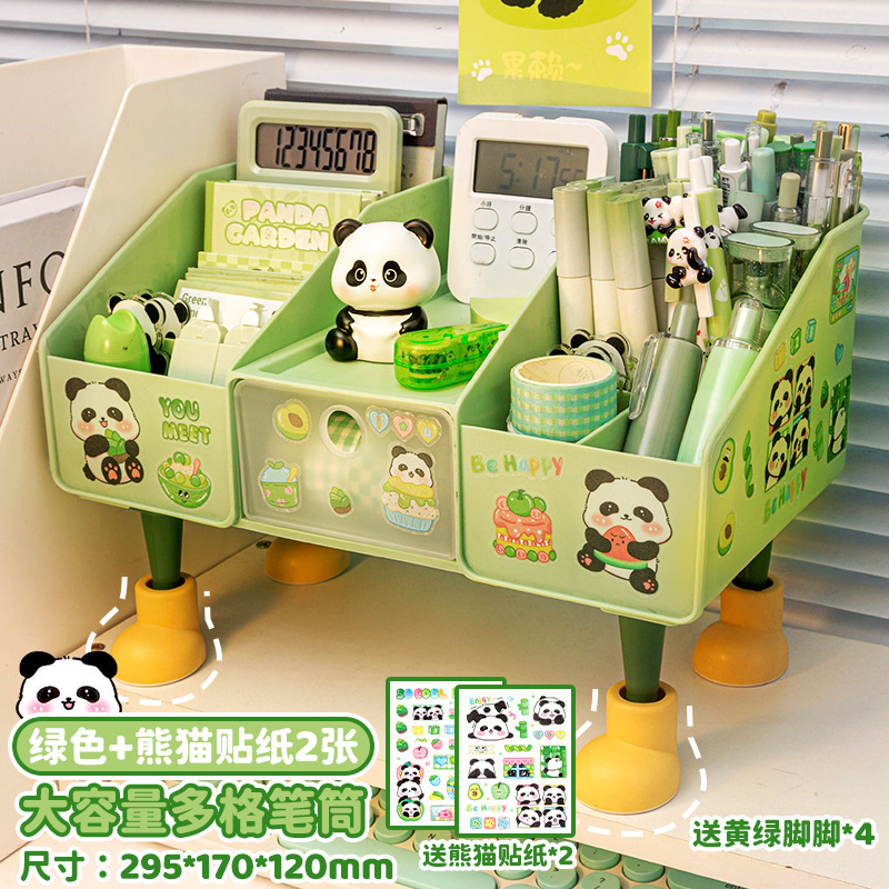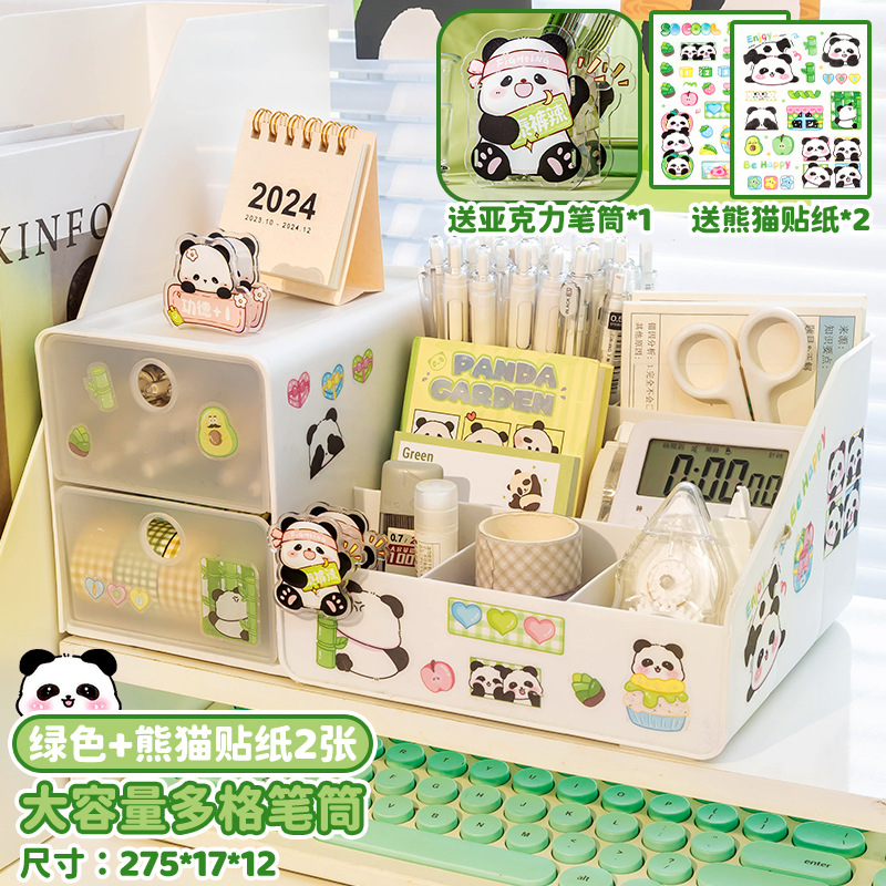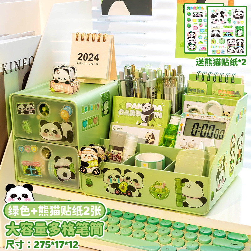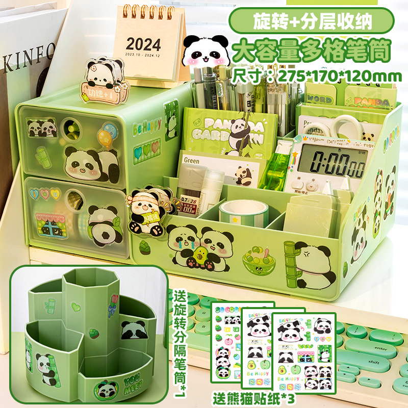 • [회전 + 레이어드 수납] 9단 녹색 펜홀더 + 회전 펜홀더 + 팬더 스티커 3개