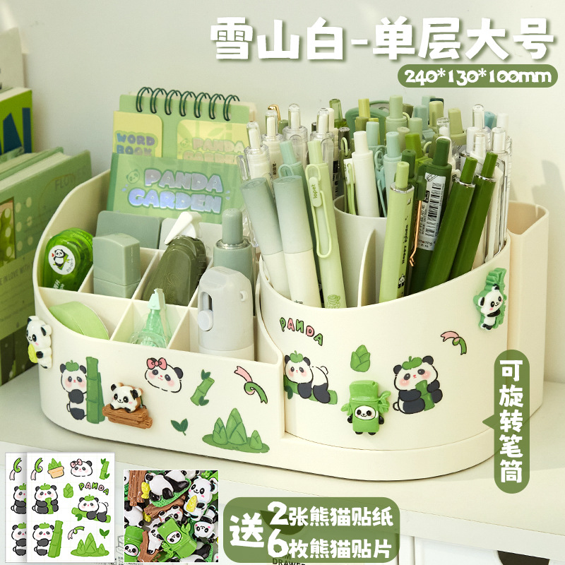 • [회전 + 레이어드 수납] 9단 흰색 펜홀더 + 회전 펜홀더 + 팬더 스티커 3개