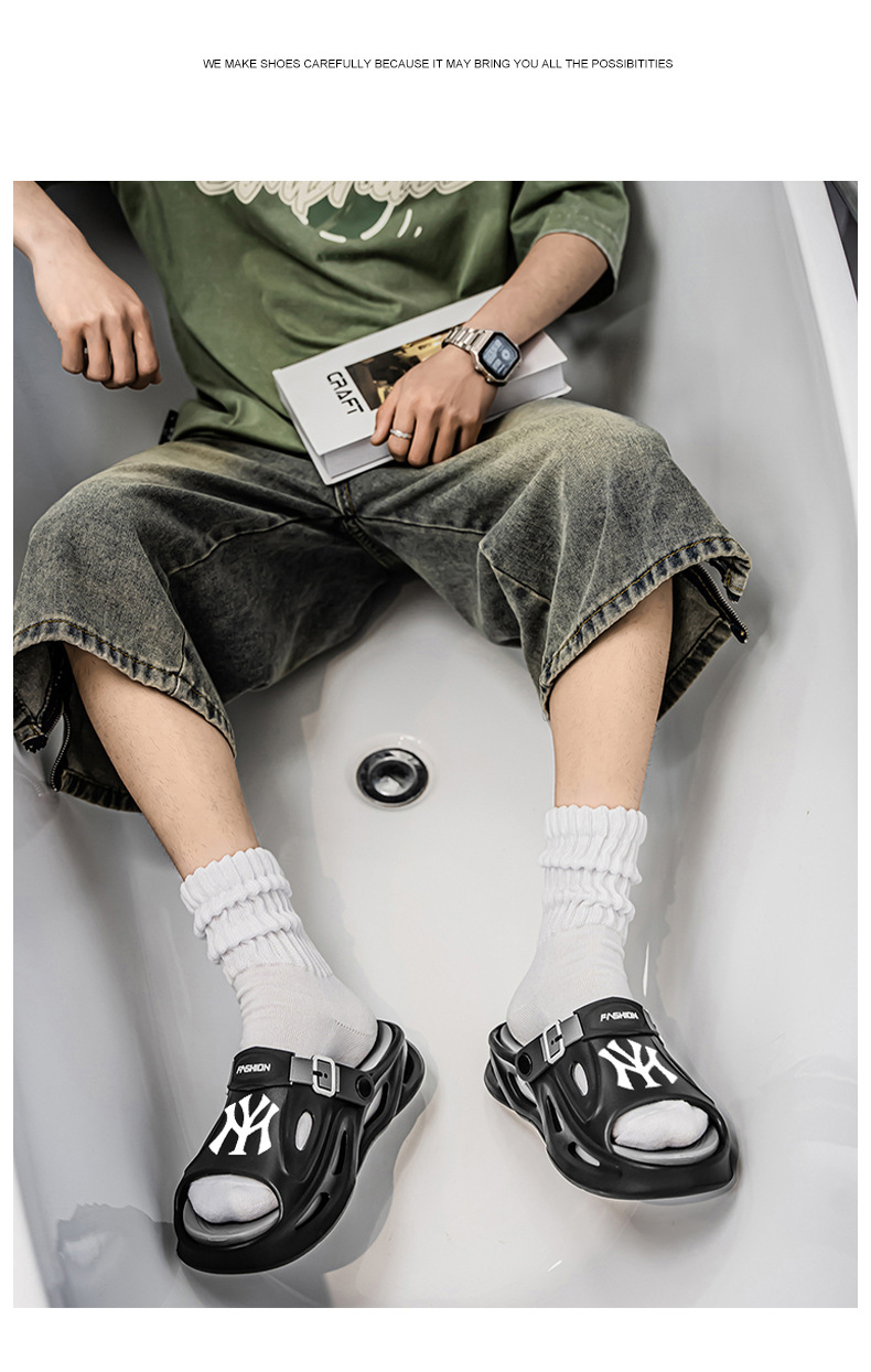 남성용 여름 크로스보더 나막신 2025 새로운 두꺼운 밑창 슬리퍼, 야외 스포츠 미끄럼 방지 샌들스토어 가기