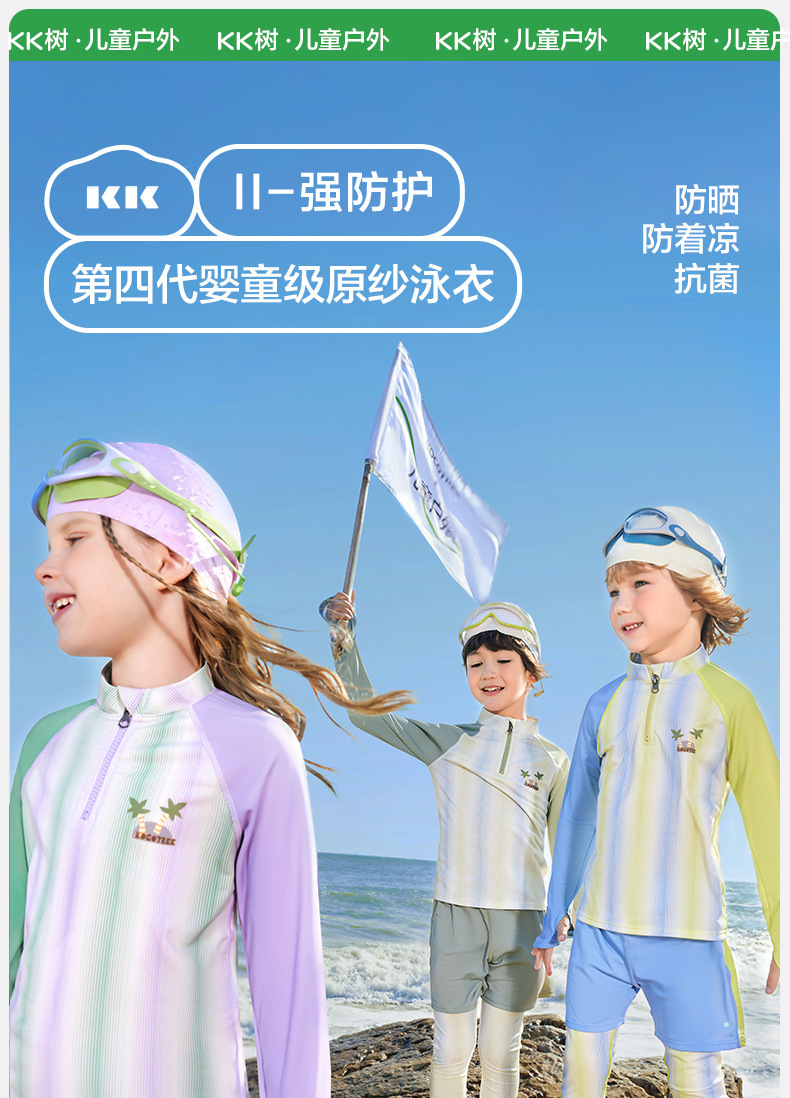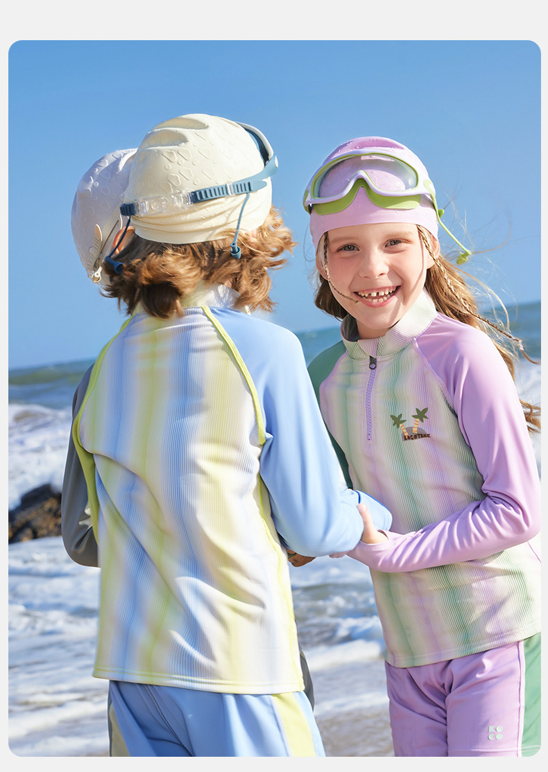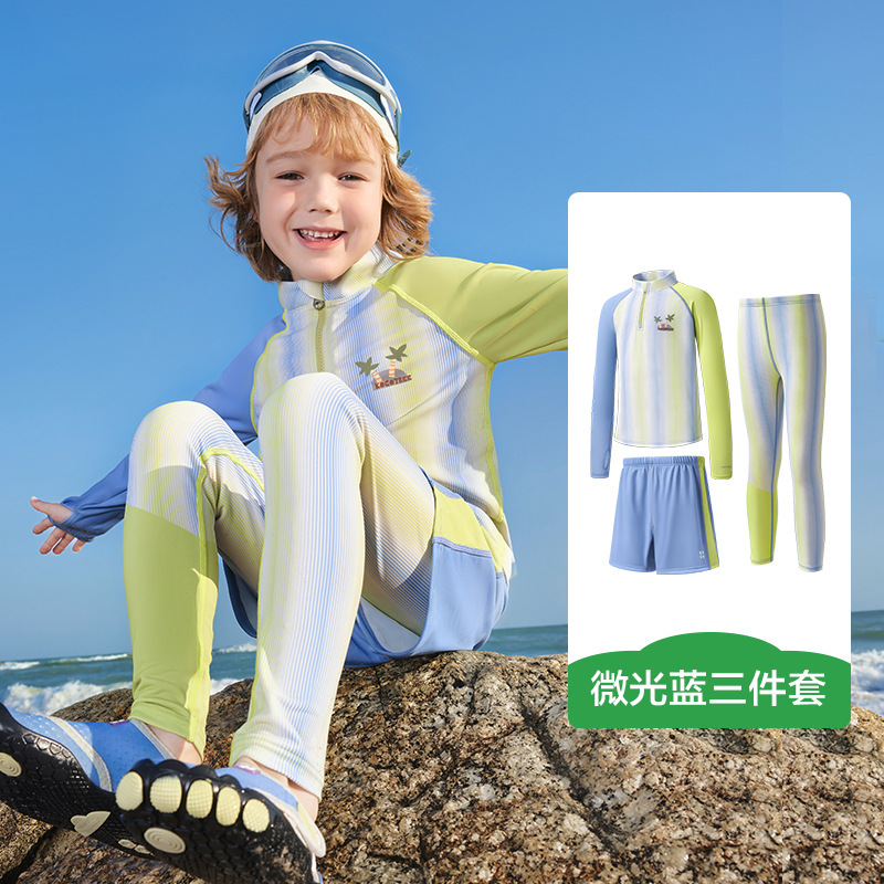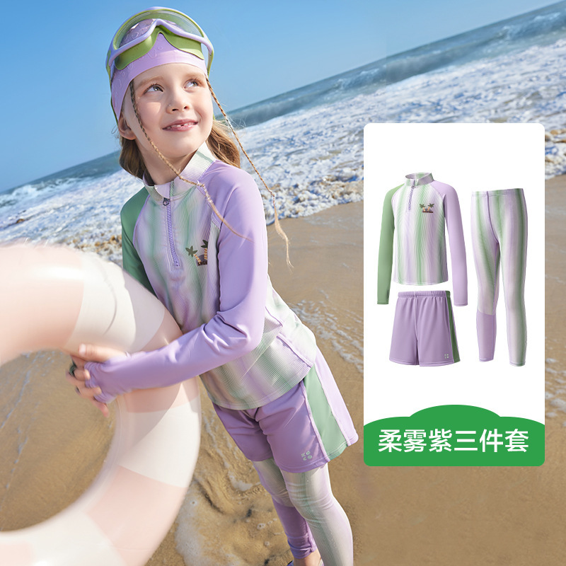 KK 트리 어린이 수영복 소년 소녀 아기 긴 소매 분할 3 조각 세트 수영 옷 온천 해변 태양 보호