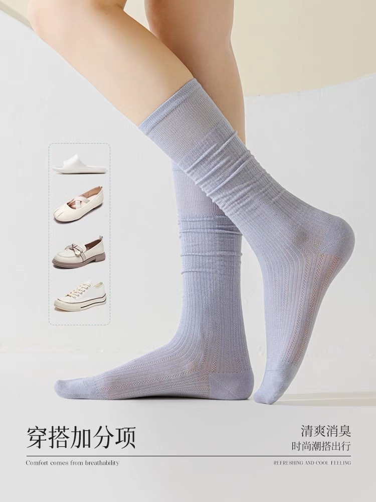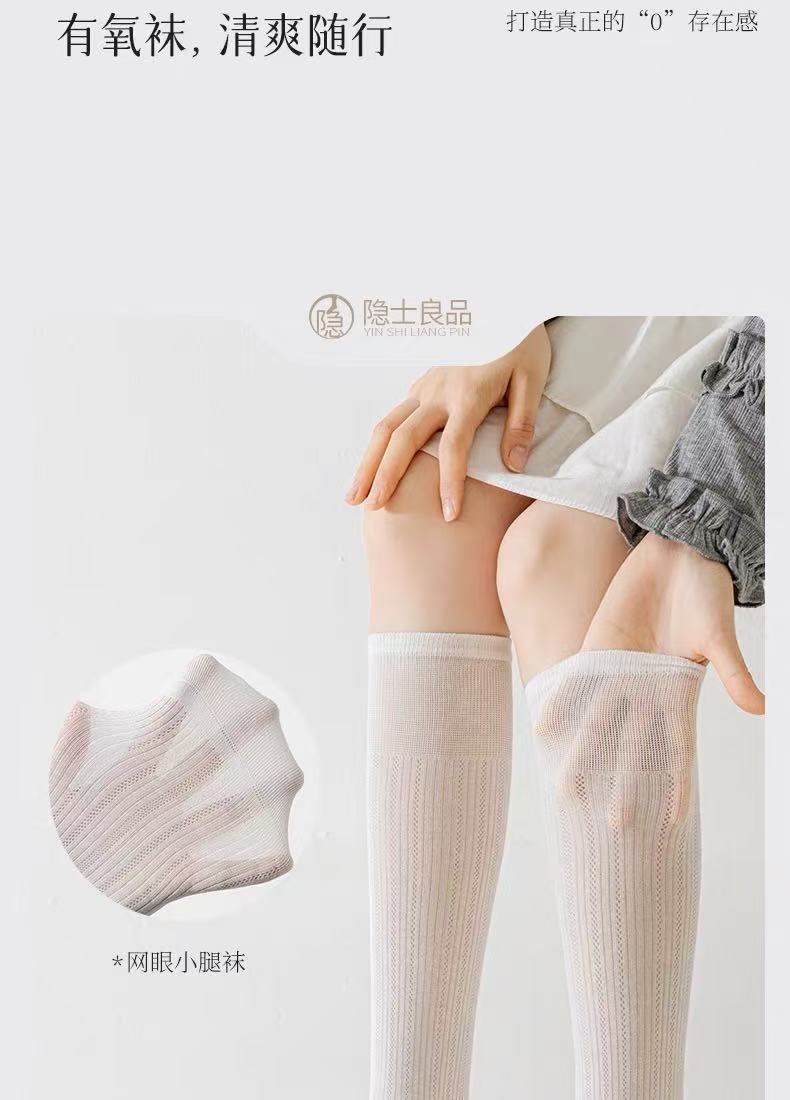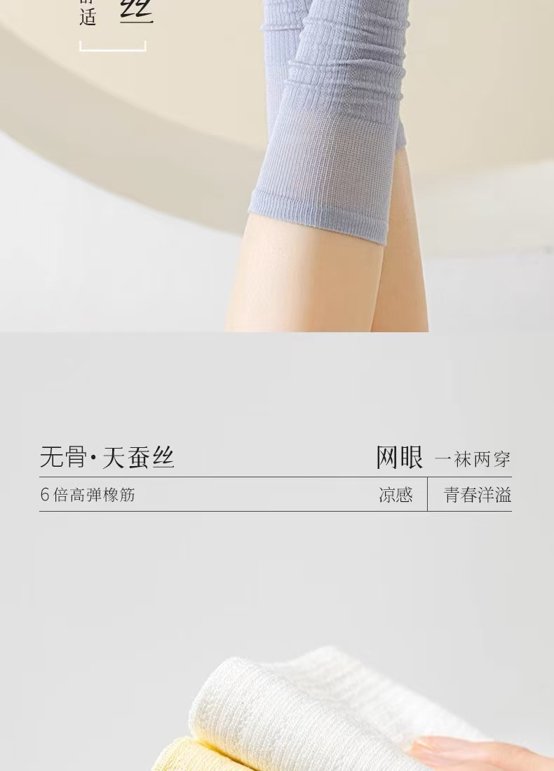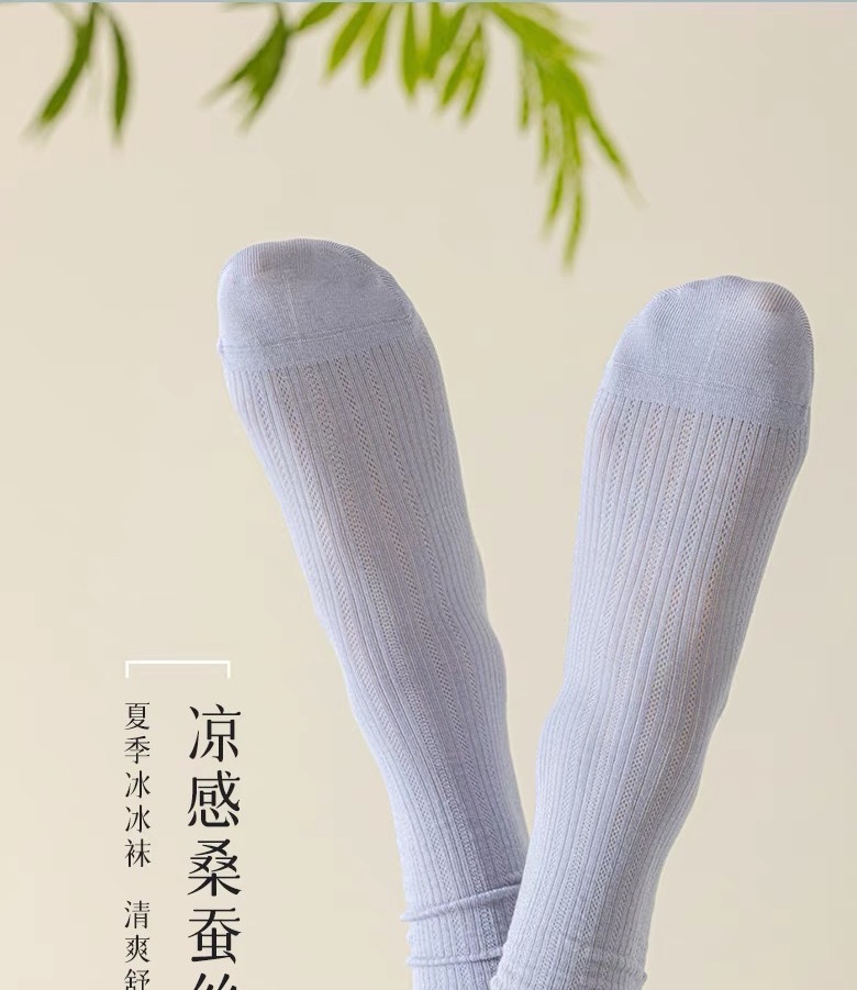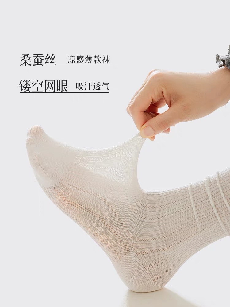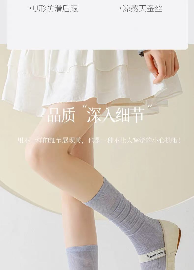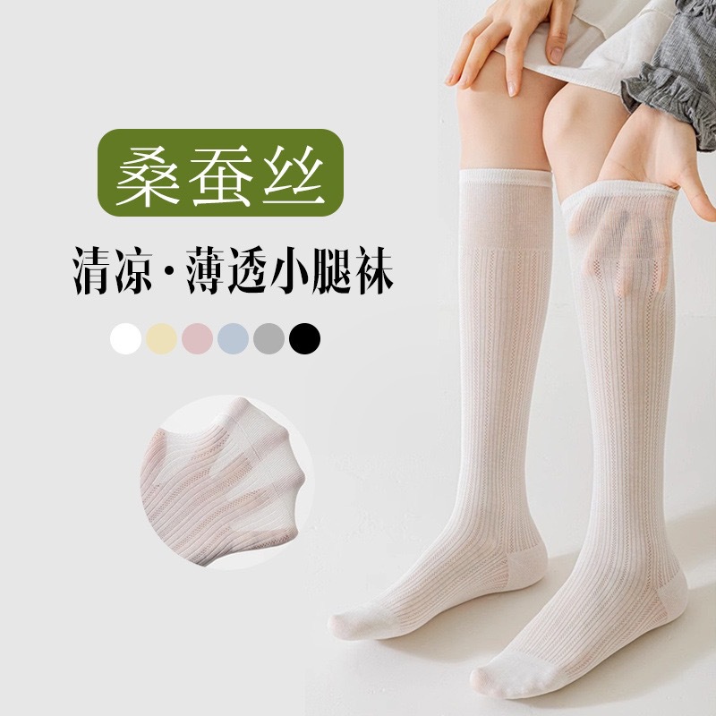 여성용 멀버리 실크 양말, 봄, 가을 미끄럼 방지 슬리밍 아이스 스타킹, 여름 얇은 흰색 종아리 양말스토어 가기