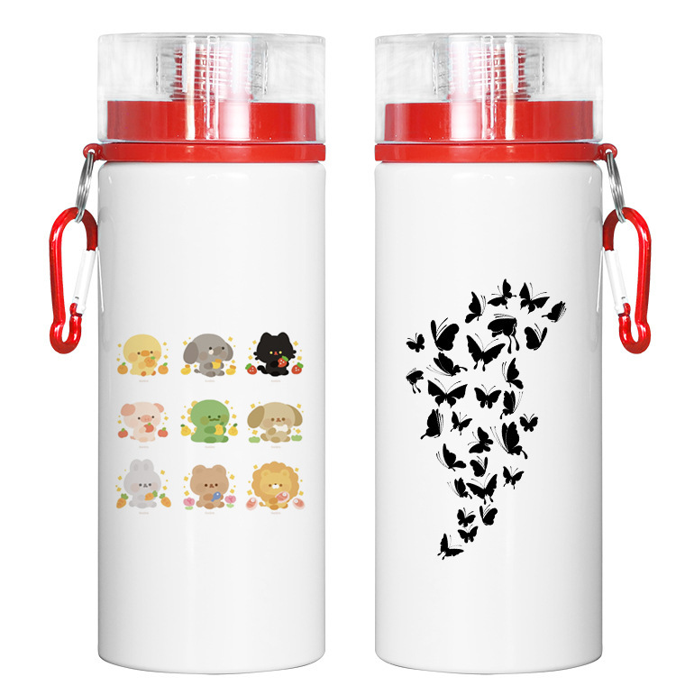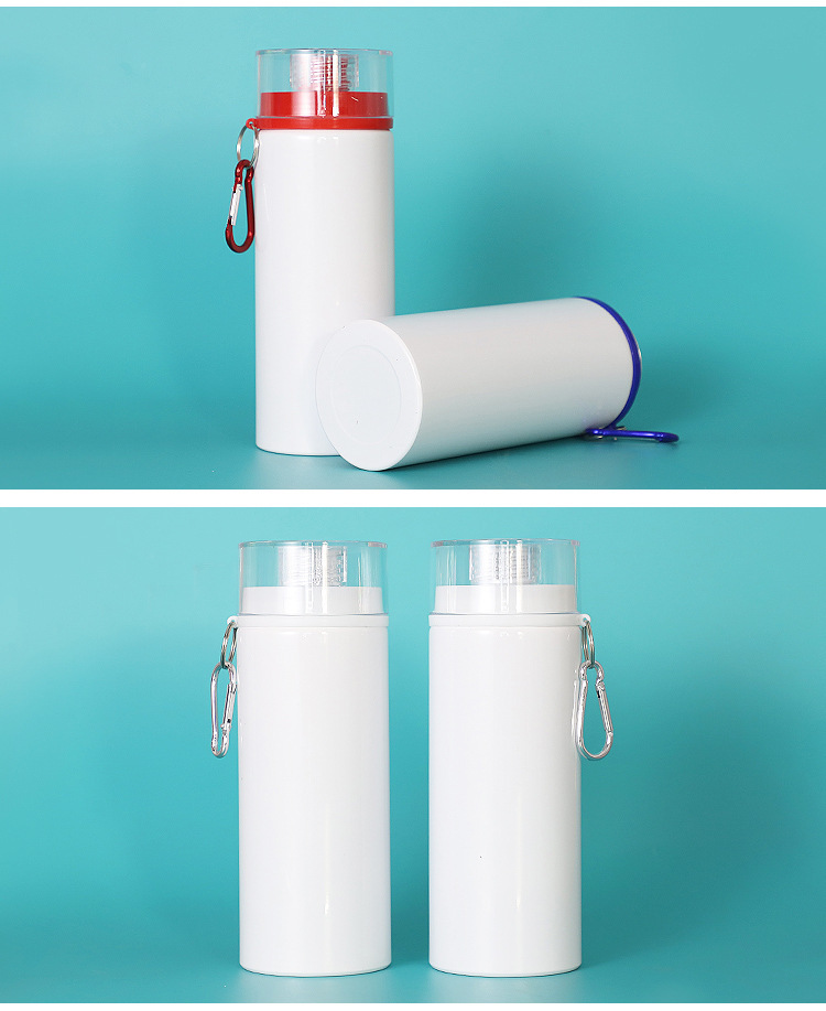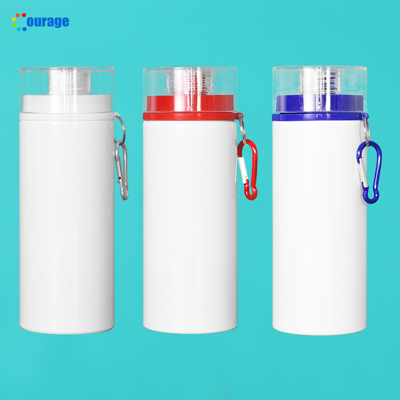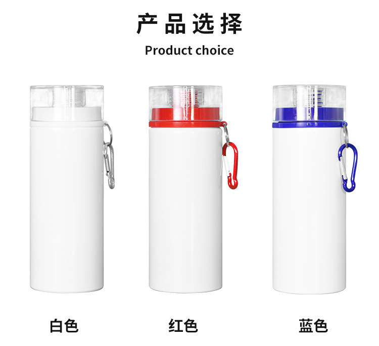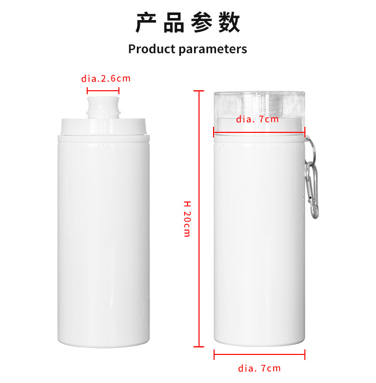 창조적 인 대용량 스포츠 주전자 600ml 컬러 투명 뚜껑 알루미늄 주전자 버클 카라비너 휴대용 주전자 알루미늄