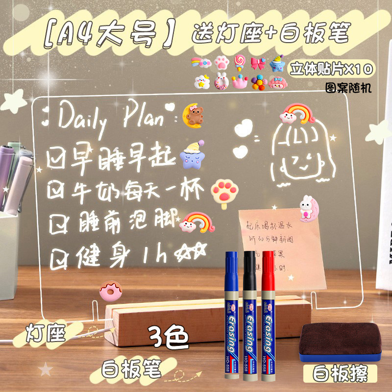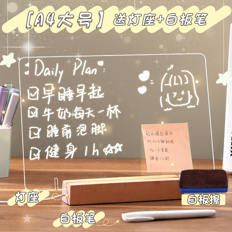크리 에이 티브 인터넷 연예인 투명 아크릴 빛나는 데스크탑 일정 알림 메시지 보드 작은 화이트 보드 사무실 계획 메시지