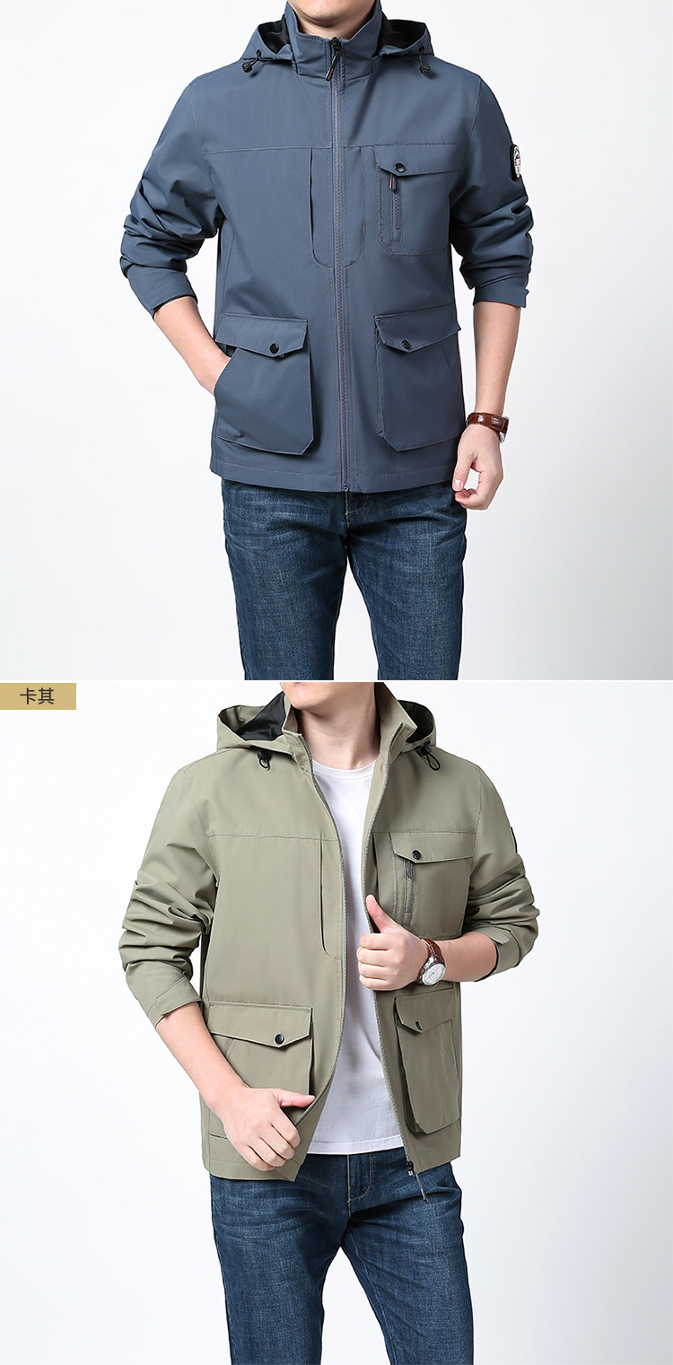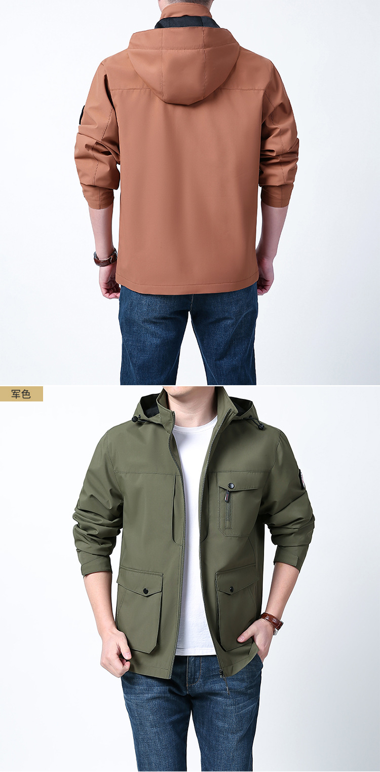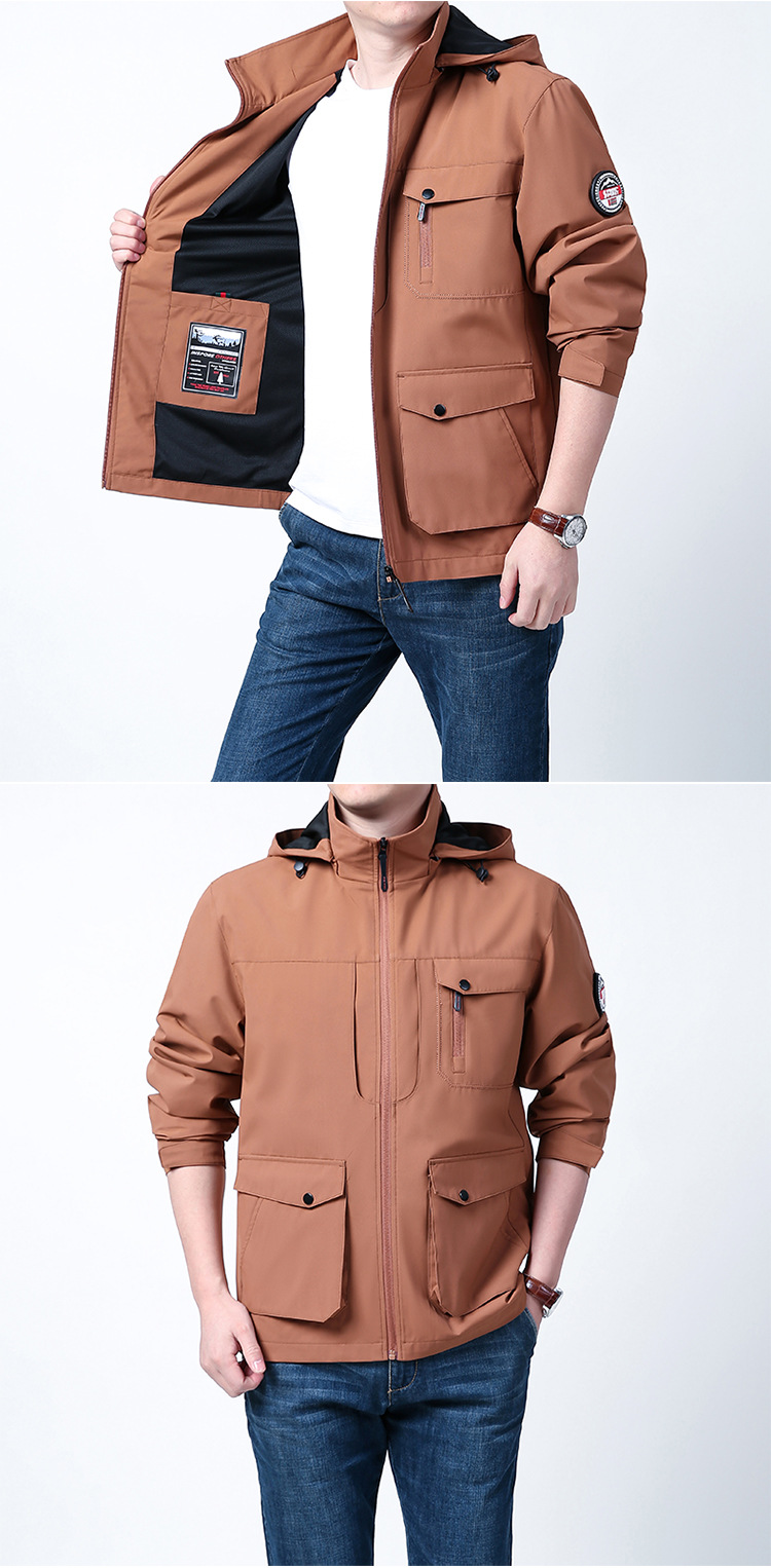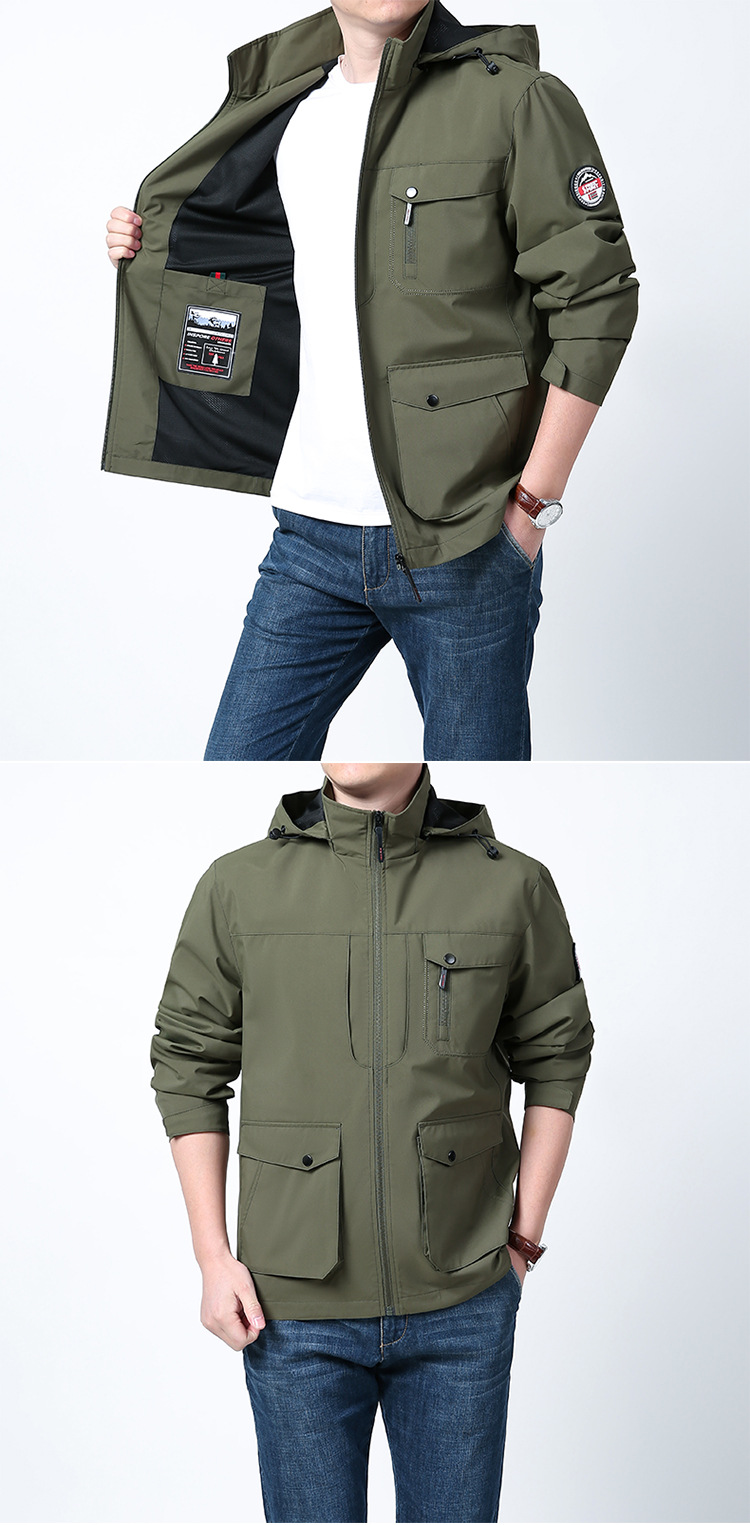 국경 간 대형 야외 봄, 가을 새로운 방풍 작업 재킷 남성 후드 윈드 브레이커 멀티 포켓 남성 재킷