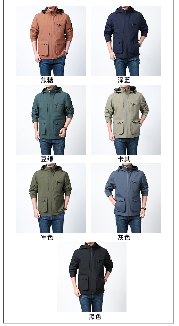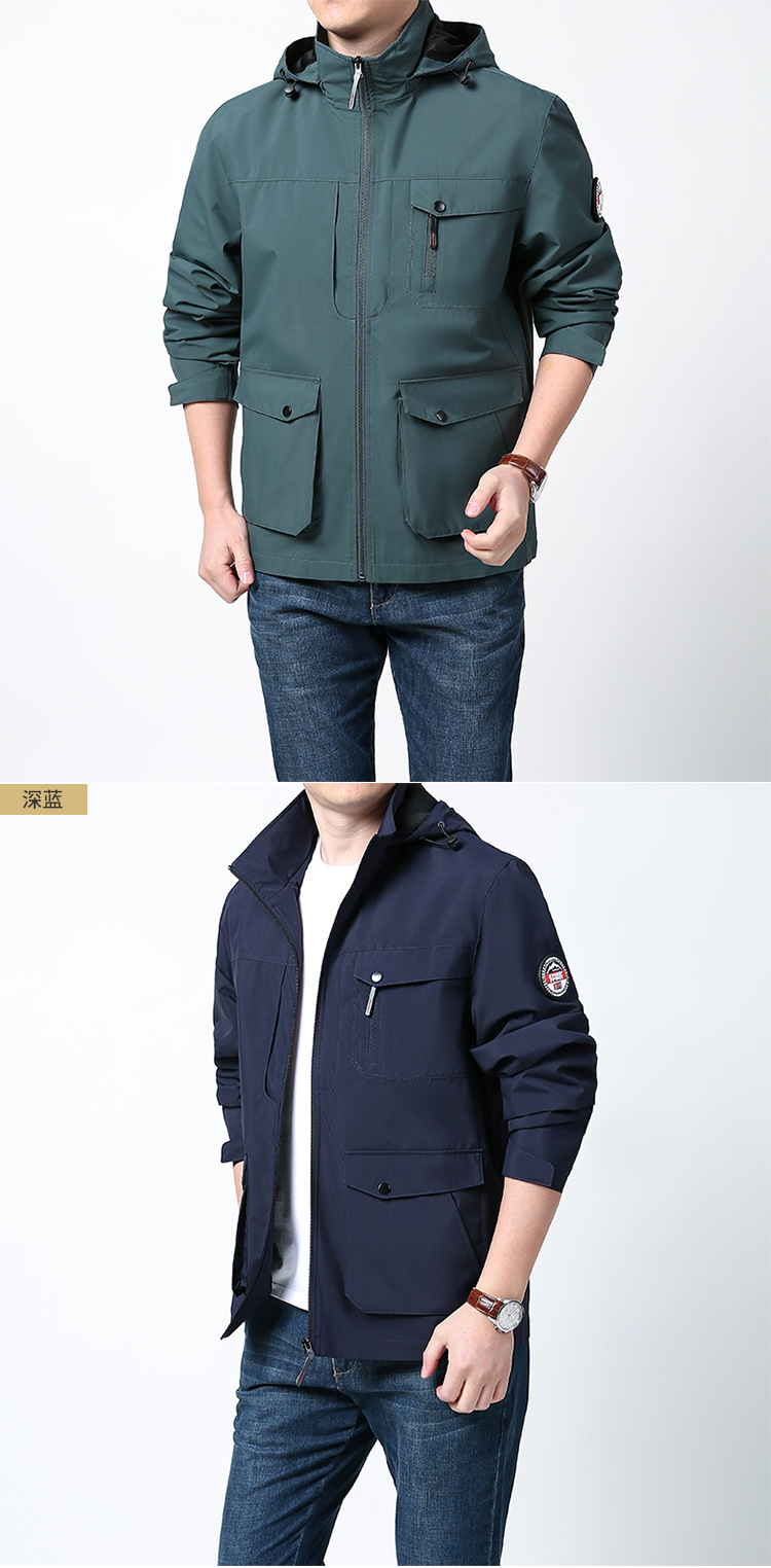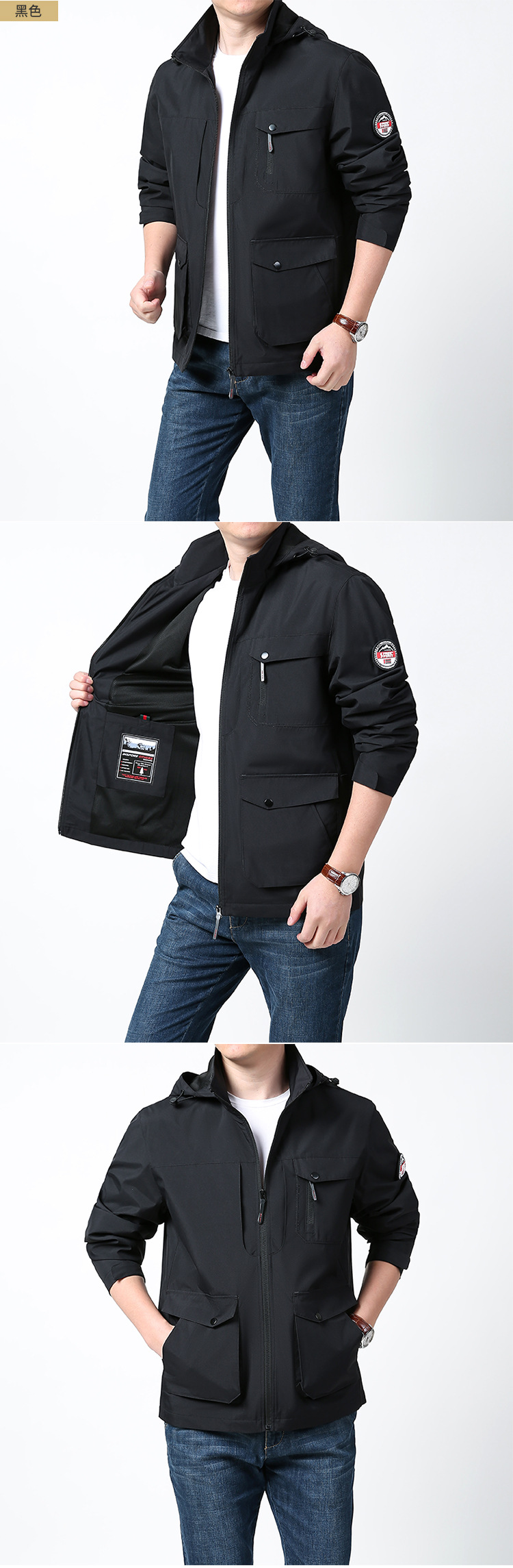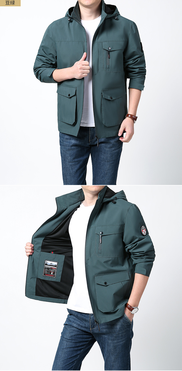 국경 간 대형 야외 봄, 가을 새로운 방풍 작업 재킷 남성 후드 윈드 브레이커 멀티 포켓 남성 재킷