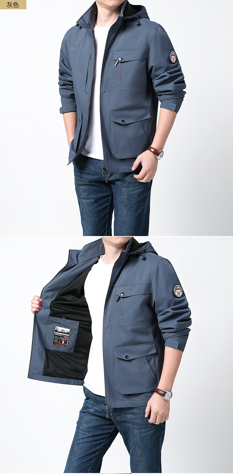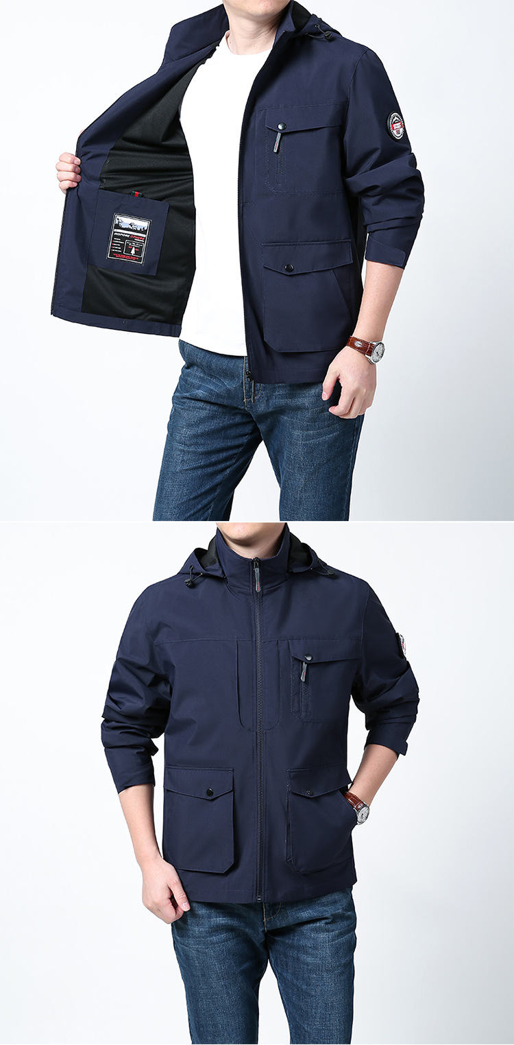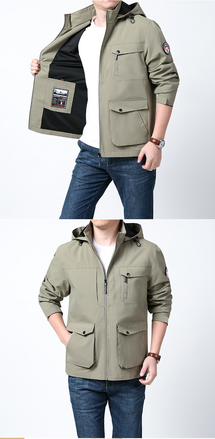 국경 간 대형 야외 봄, 가을 새로운 방풍 작업 재킷 남성 후드 윈드 브레이커 멀티 포켓 남성 재킷스토어 가기