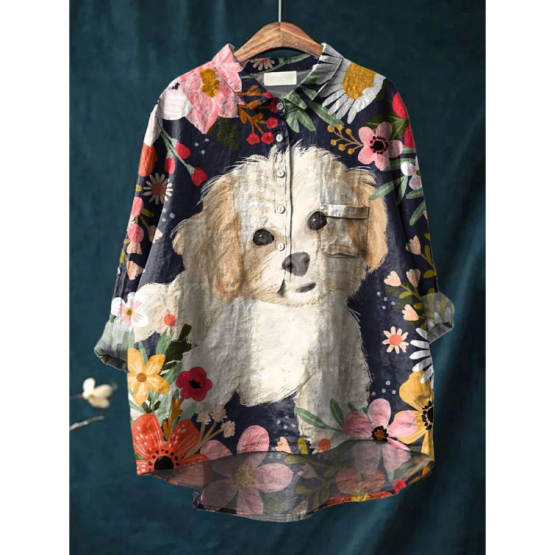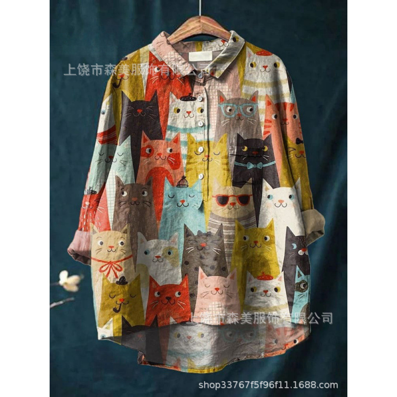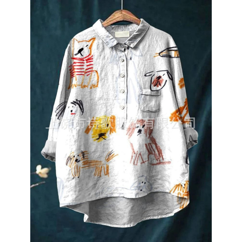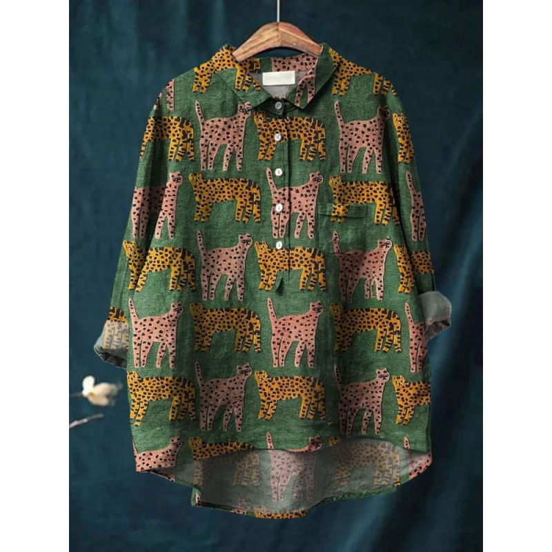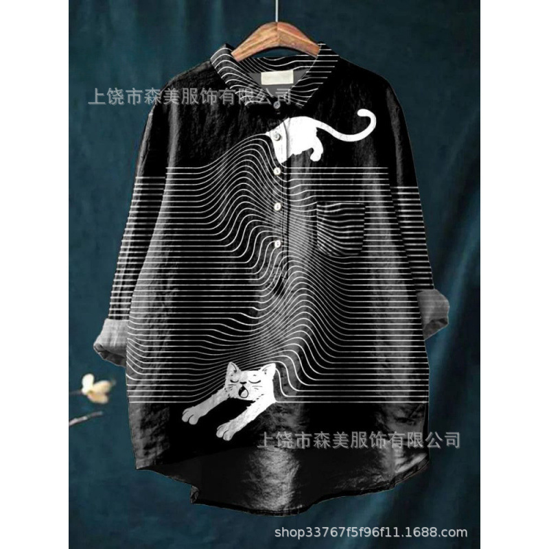 2025 독립 스테이션 유럽과 미국의 국경 간 새로운 캐주얼 긴팔 셔츠 동물 프린트 하와이 긴팔 국경 간 셔츠스토어 가기