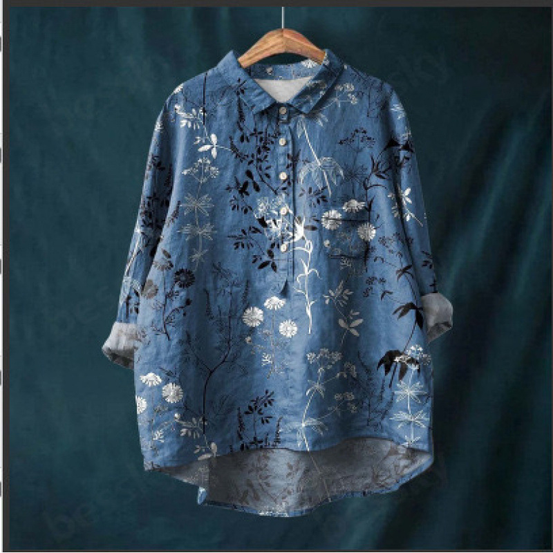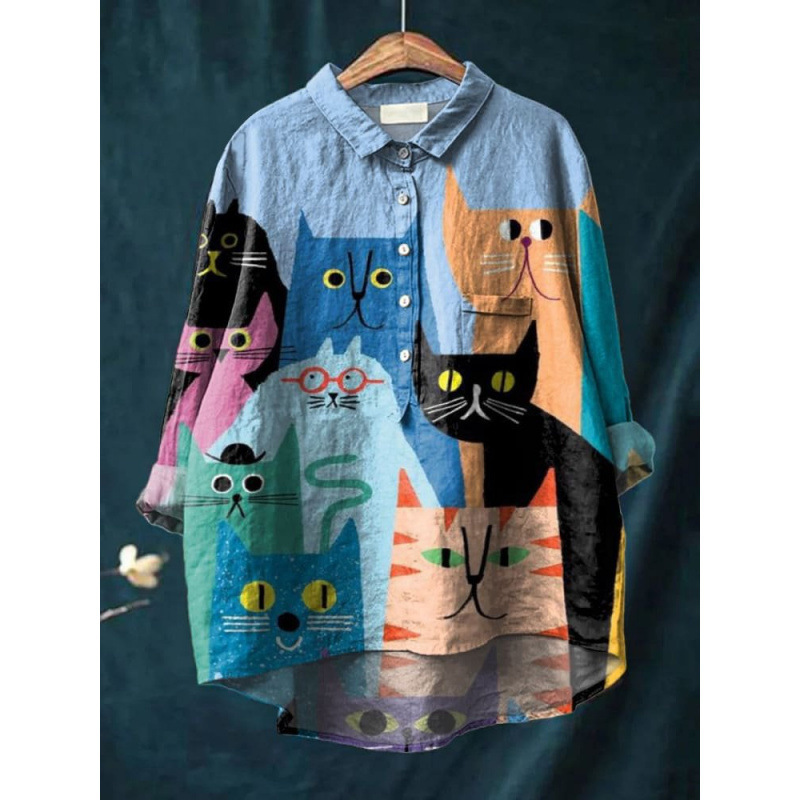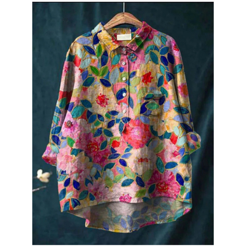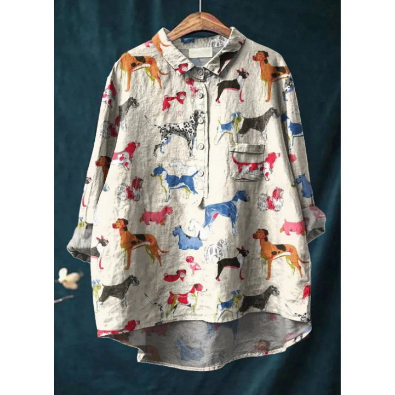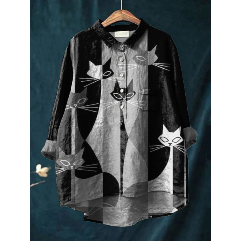2025 독립 스테이션 유럽과 미국의 국경 간 새로운 캐주얼 긴팔 셔츠 동물 프린트 하와이 긴팔 국경 간 셔츠스토어 가기