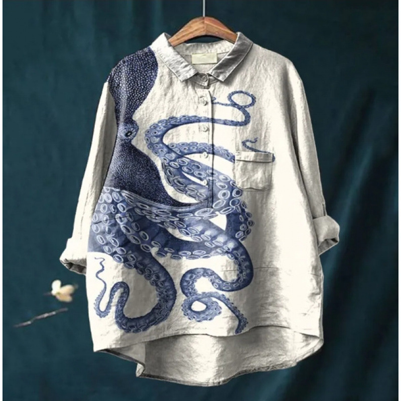 2025 독립 스테이션 유럽과 미국의 국경 간 새로운 캐주얼 긴팔 셔츠 동물 프린트 하와이 긴팔 국경 간 셔츠