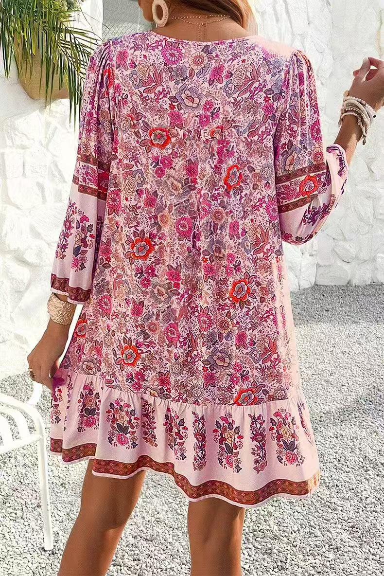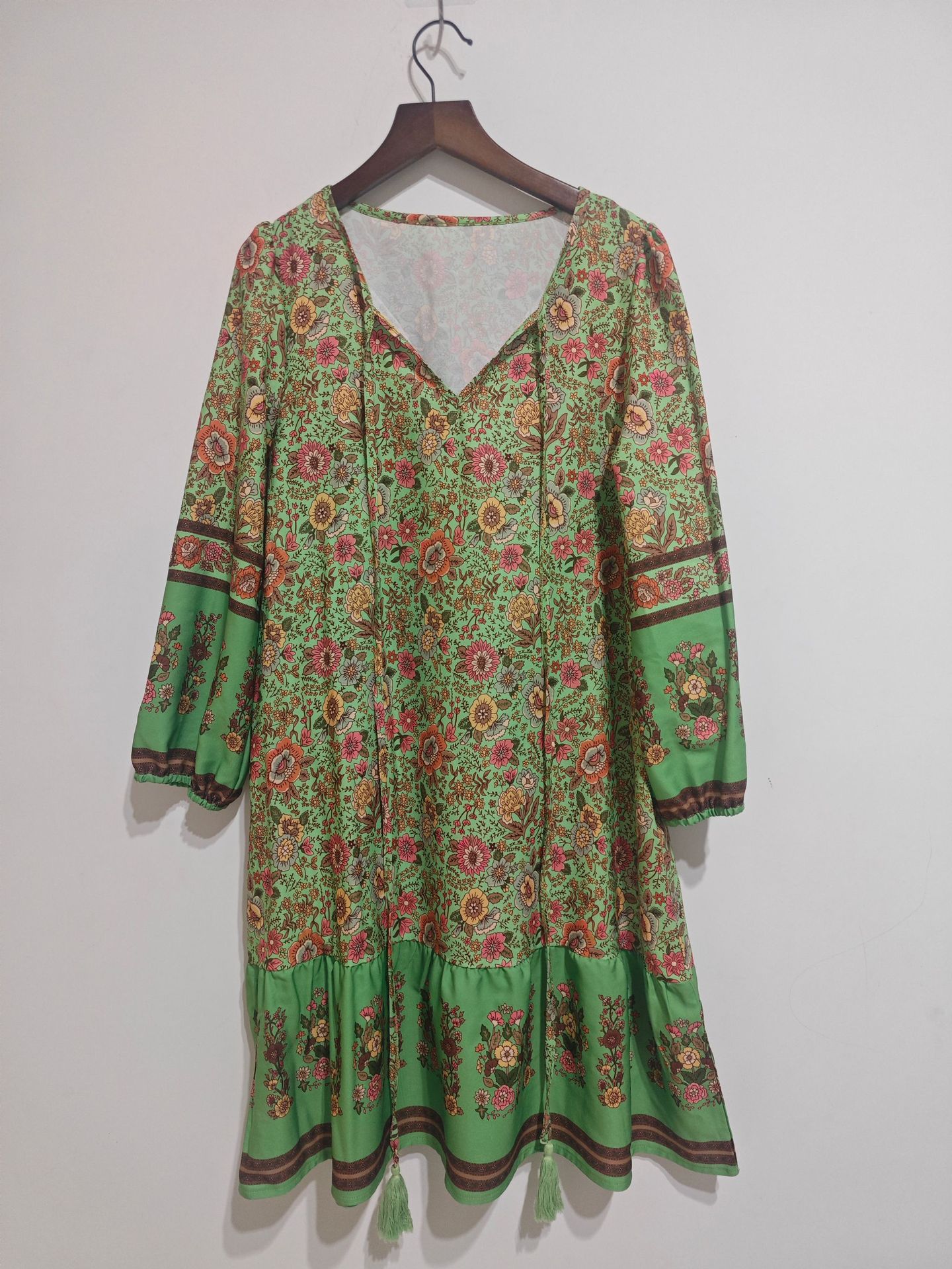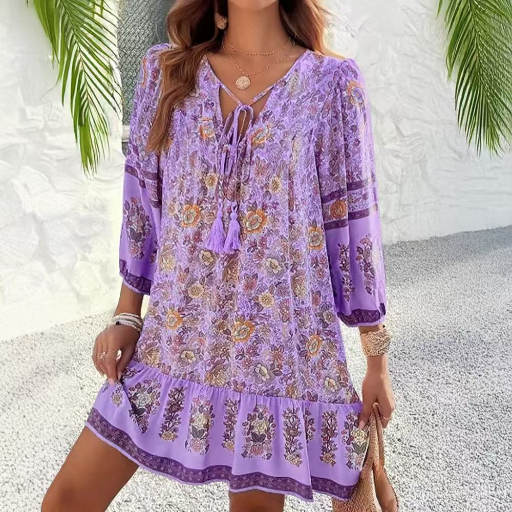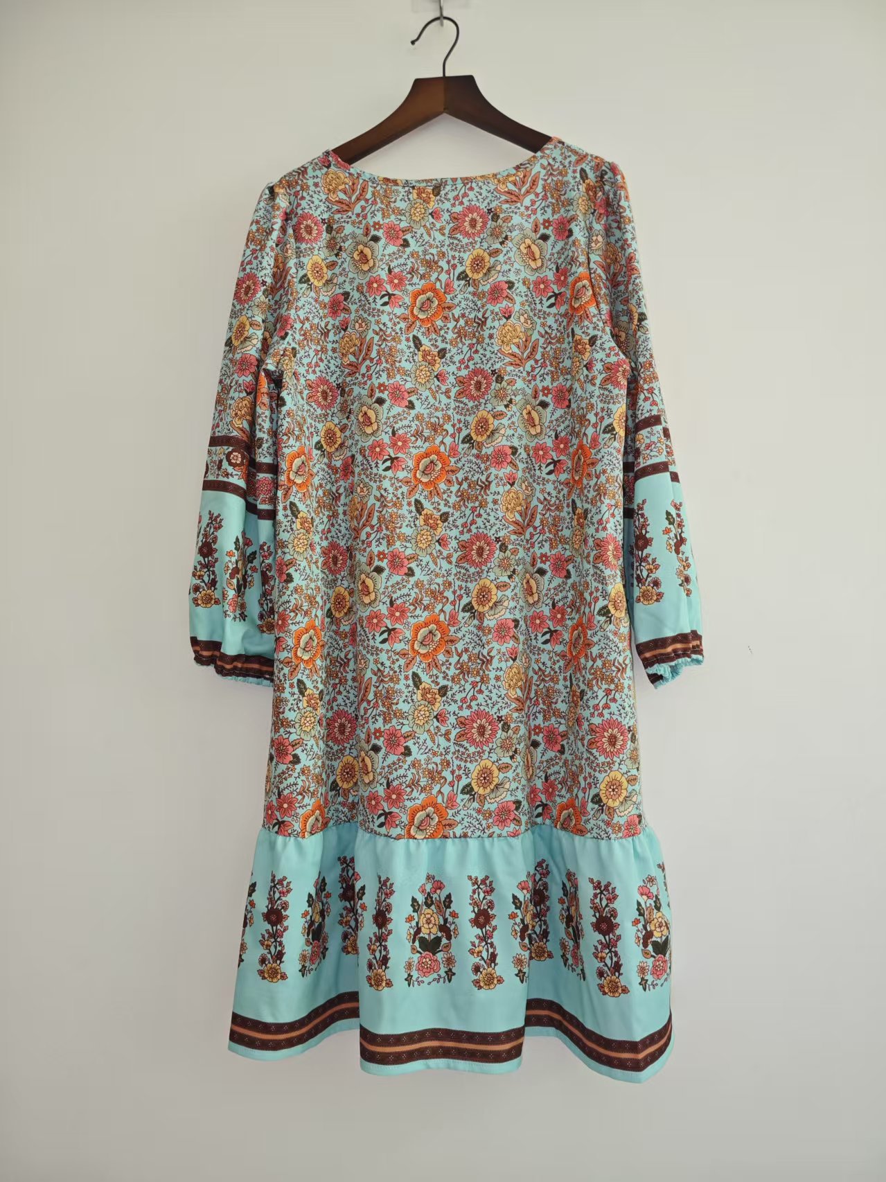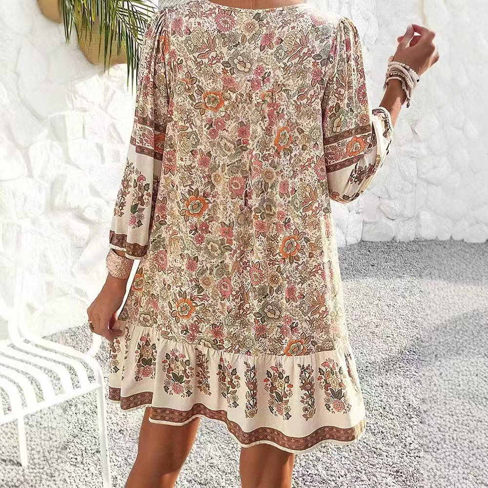 재고 있음 2025 유럽과 미국의 국경 간 프린트 셔츠 대외 무역 봄 여름 캐주얼 보헤미안 휴가 v 넥 드레스 여성용