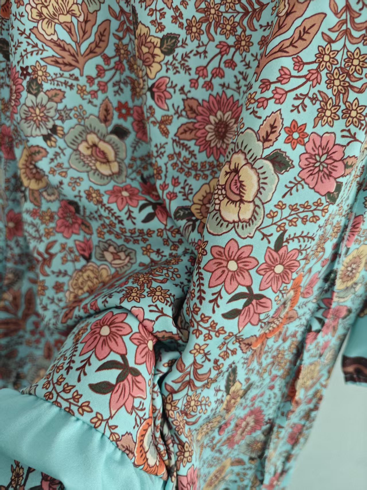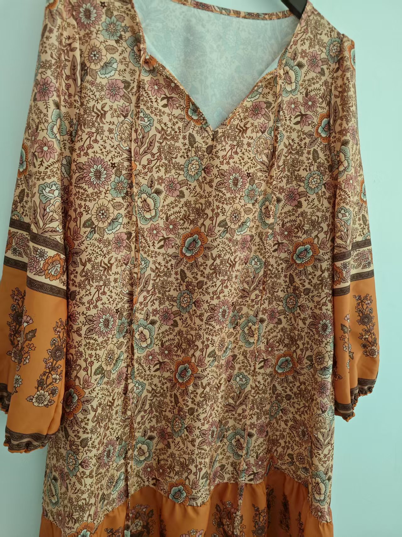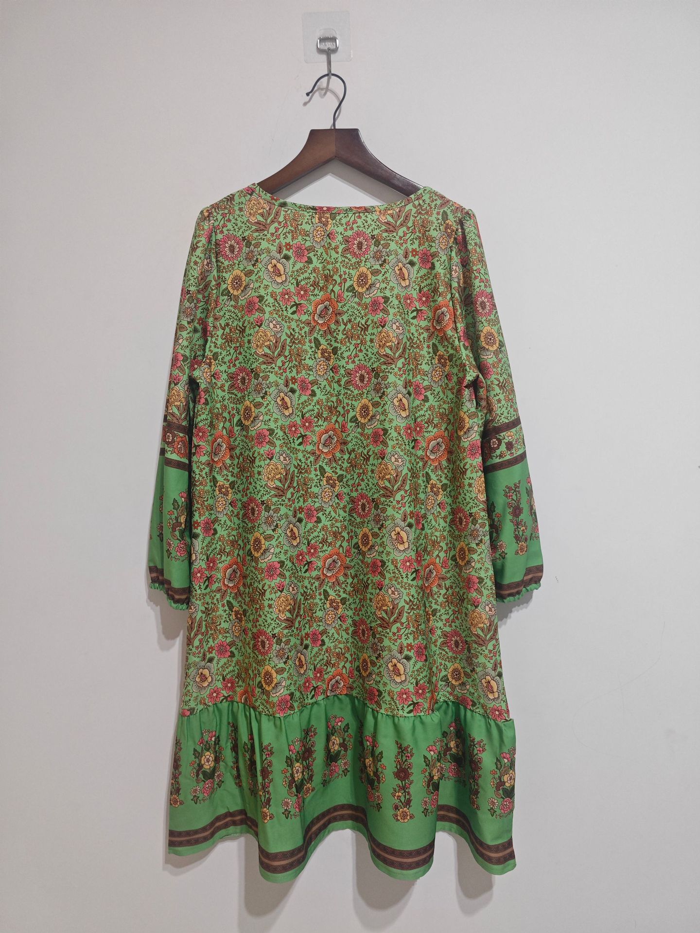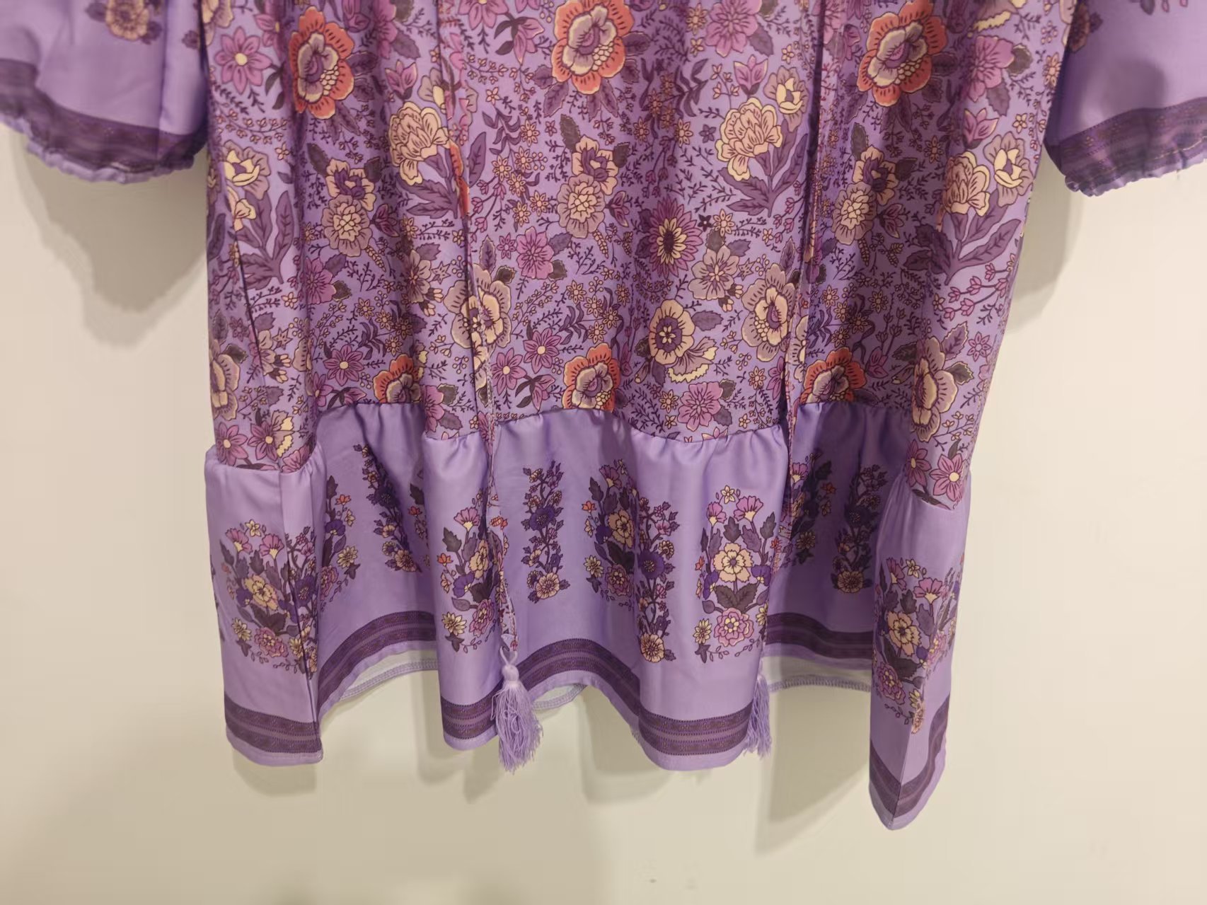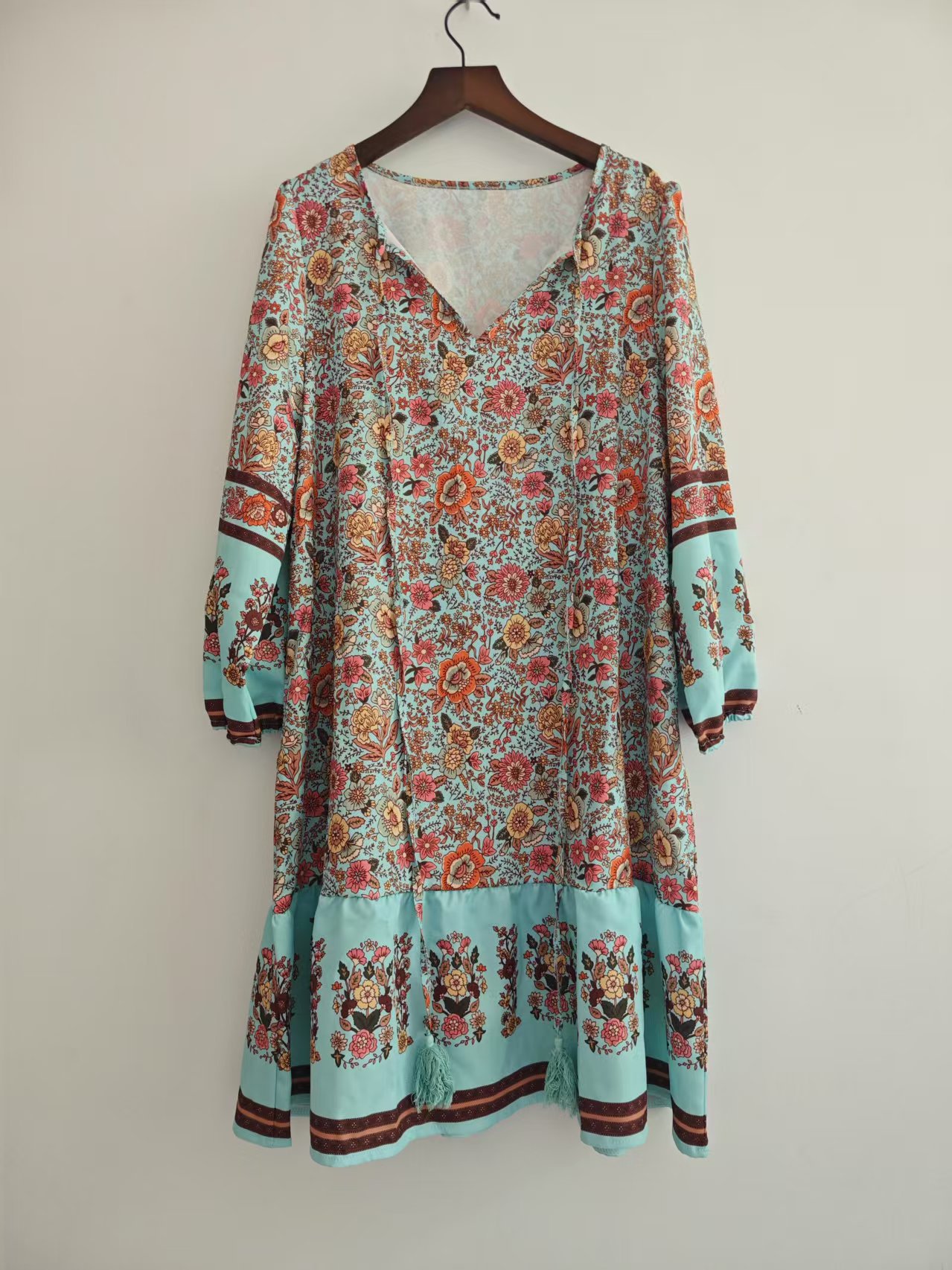 재고 있음 2025 유럽과 미국의 국경 간 프린트 셔츠 대외 무역 봄 여름 캐주얼 보헤미안 휴가 v 넥 드레스 여성용