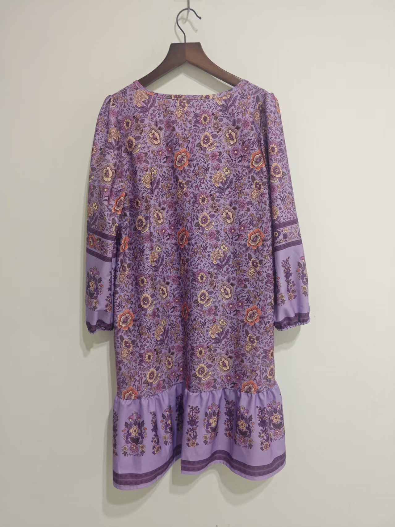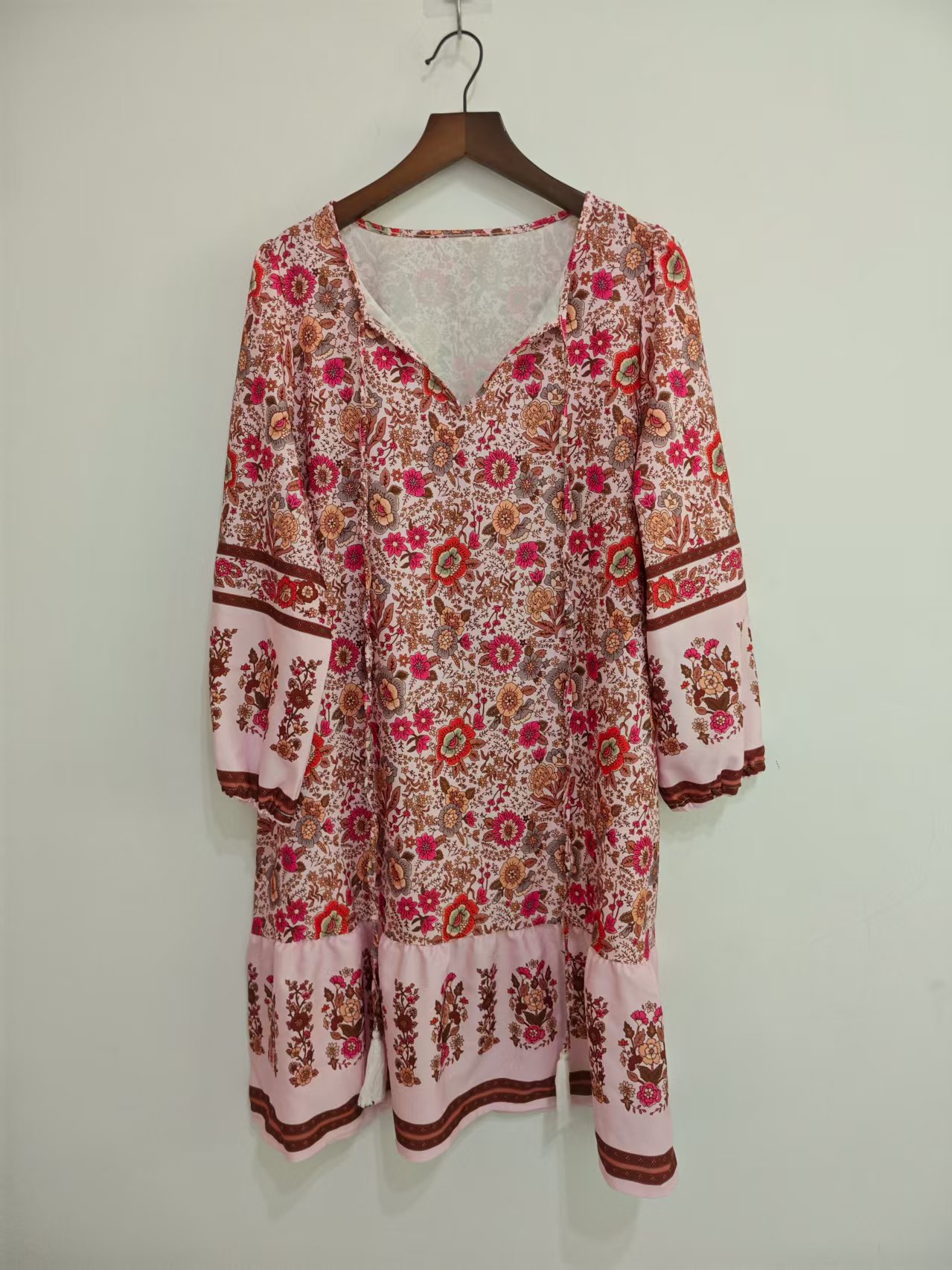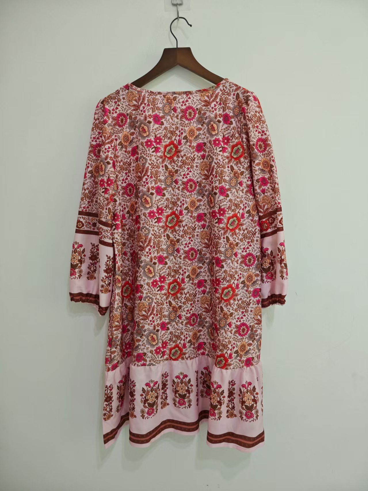 재고 있음 2025 유럽과 미국의 국경 간 프린트 셔츠 대외 무역 봄 여름 캐주얼 보헤미안 휴가 v 넥 드레스 여성용스토어 가기